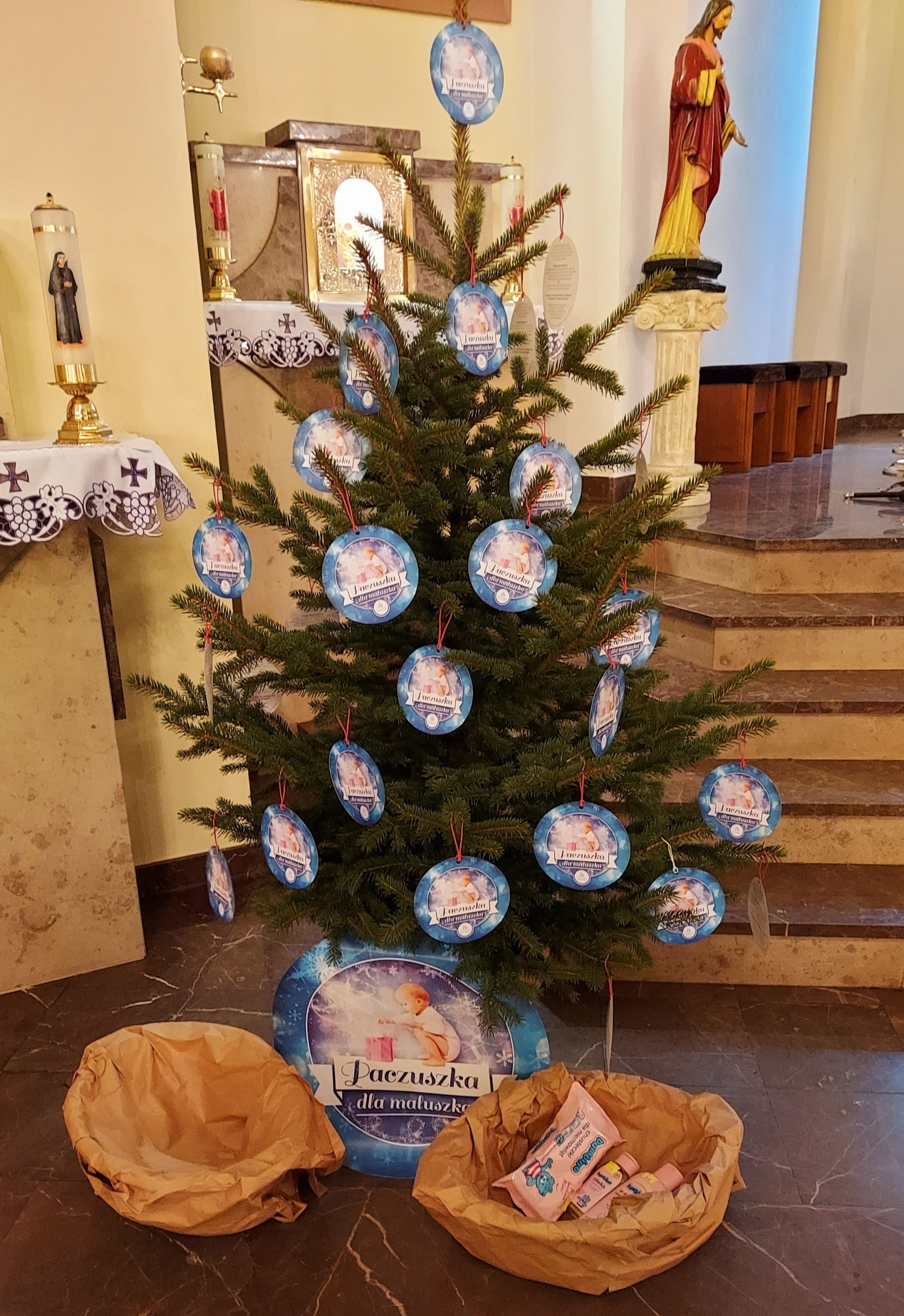 Przez cały Adwent można do skrzyneczek przy choince w kościele wkładać produkty potrzebne najmniejszym dzieciom: pieluchy, proszki, płyny do prania kremy, oliwki szampony. To nasza wspólna zbiórka na koniec wszystko spakujemy i przekażemy do odpowiedniej placówki opiekującej się maleńkimi dziećmi wskazanej nam przez Fundację.