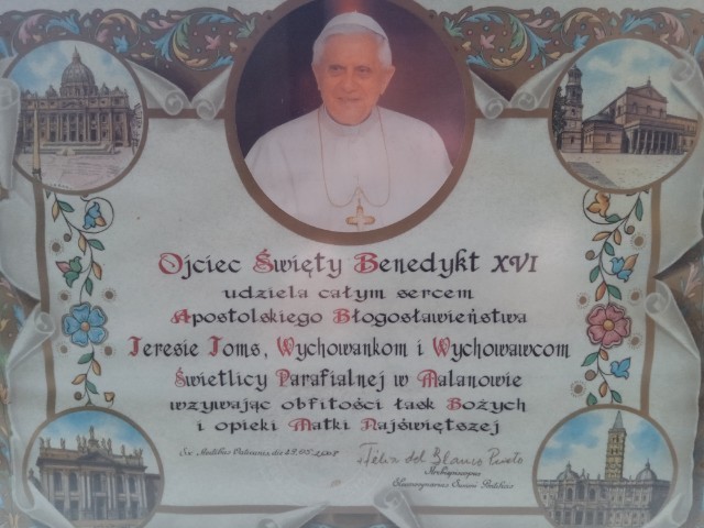 Dziś, z perspektywy czasu ze wzruszeniem wspominamy tę pielgrzymkę i pełne emocji spotkanie z papieżem Benedyktem XVI. W tym dniu, a była to niedziela 25 maja, rano uczestniczyliśmy we mszy św. przy grobie Jana Pawła II. Byliśmy tym faktem bardzo przejęcie a trwając przy nim złożyliśmy intencje zebrane wcześniej od naszych parafian. Potem czekała nas kolejna wzruszająca modlitwa na placu św. Piotra z papieżem Benedyktem XVI. Gdy papież ukazał się w oknie nasza radość była wielka. Nasz transparent z napisem „Malanów”, był bardzo widoczny na całym, placu św. Piotra, a także w telewizji bowiem zaraz otrzymaliśmy wiadomości mms'owe z Malanowa, że jesteśmy widoczni na ekranie. I taką też pamiątkę mamy z tego wydarzenia. Radość, radość, wzruszenie i wdzięczność – były to uczucia, które nam wówczas towarzyszyły. A była to niedziela wyjątkowa. W tym dniu we Włoszech obchodzono Boże Ciało. Oczywiście papież przemówił do nas też po polsku co bardzo nas i ucieszyło i jakoś wyróżniło. Warto dziś po latach wyrazić wdzięczność Panu Bogu za ten dar spotkania w tym wyjątkowym miejscu jakim jest stolica Piotrowa. Otrzymaliśmy też od papieża Benedykta XVI błogosławieństwo dla naszej Świetlicy Parafialnej. Wciąż dziękujemy Bogu za ten święty czas i za osobę papieża Benedykta XVI, który 31 grudnia 2022 odszedł do domu Ojca. Módlmy się za niego i prośmy Boga by Kościół - tak jak naszego kochanego św. Jana Pawła II – wyniósł Benedykta XVI na ołtarze.