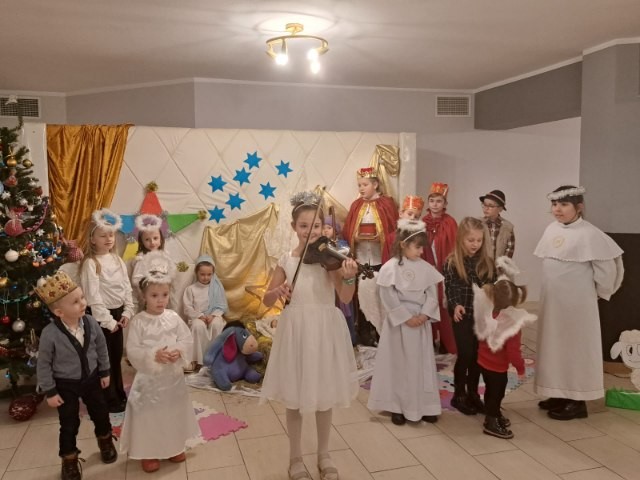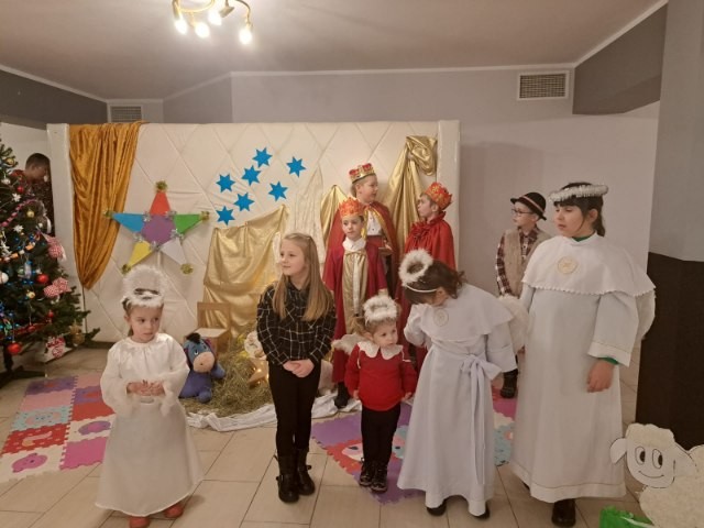 W święto Trzech Króli w restauracji Hacjenda odbyło się spotkanie świąteczne organizowane przez wspólnotę Świetlicy Parafialnej. Wokół żłóbeczka spotkaliśmy się całymi rodzinami. Ks. Proboszcz rozpoczął spotkanie modlitwą i błogosławieństwem opłatka. Wyraził wielką radość z obecności całych rodzin i dziękował wszystkim za zaangażowanie się w organizację i pracę naszej Świetlicy Parafialnej. Pan wójt Ireneusz Augustyniak złożył nam życzenia dobrej pracy z dziećmi i zapewnił o dalszej współpracy. Dzieci adorowały Pana Jezusa w przygotowanej szopce. Świętą Rodzinę reprezentowała Lena Marciniak jako Maryja i Marek Pawlak jako św. Józef. Figurka Jezusa w żłóbeczku jest wspaniałym prezentem od ks. Proboszcza dla naszej świetlicy. Ma swoją historię. Dzieciątko Jezus w tej figurce towarzyszyło wielu pokoleniom parafian Malanowskich. Dziękujemy ks. Proboszczowi, że właśnie naszej świetlicowej wspólnocie powierzył ten skarb. Oczywiście w szopce były aniołki, pasterze i bohaterowie dnia Trzej Królowie. Kolędowanie rozpoczęła Małgosia Misiek grając na skrzypcach kolędę „Dzisiaj w Betlejem”. Potem piękne kolędy wykonały Maja Szamburska, Nikola Herbich, Michalina Grzelka, Zosia Wojciechowska, Maja Grzelka i Marek Janczak. Najmłodsze dzieci, które uczestniczą w spotkaniach świetlicowych zaśpiewały nową piosenkę o Matce Bożej. Tą piosenką zapowiedzieliśmy nasze przygotowania do wielkiego wydarzenia w naszej parafii, jakim będzie peregrynacja kopii cudownego obrazu Matki Bożej Częstochowskiej. Z wielką nadzieją oczekujemy na to wydarzenie. Jako wspólnota świetlicowa pragniemy się solidnie do tego dnia przygotować.