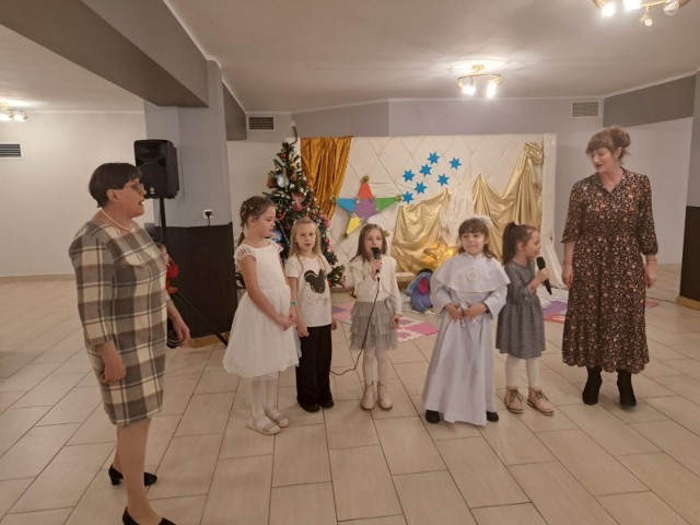 Serdecznie dziękujemy państwu Kubackim za udostępnienie nam lokalu i obsługę. Przyjęli nas serdecznie i zawsze możemy na Państwa Kubackich liczyć. Państwu Andrzejowi i Marzenie Szamburskim za nagłośnienie i pomoc w dekoracji szopki oraz transport. Mamom za upieczone smaczne ciasta, pani Beatce Borowczyk za przygotowanie maleńkich upominków.