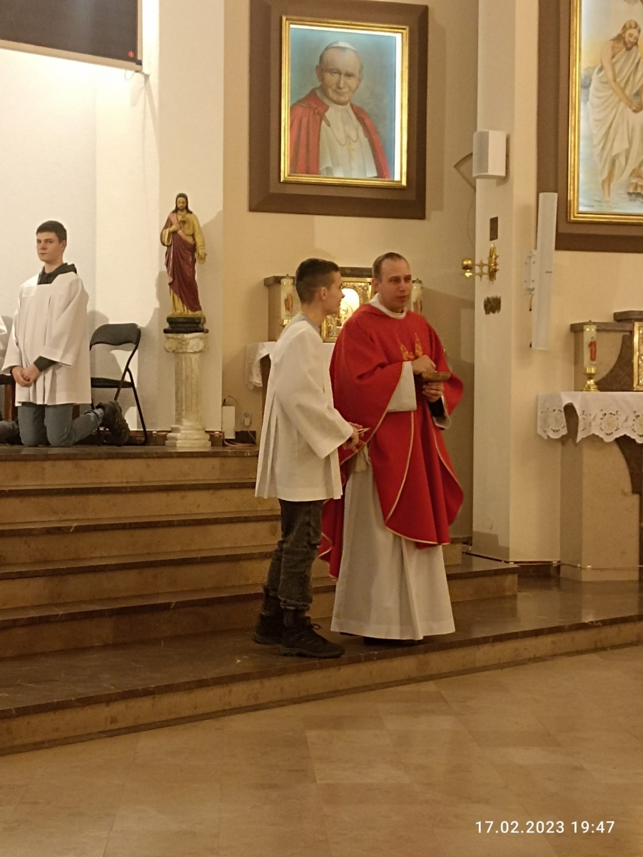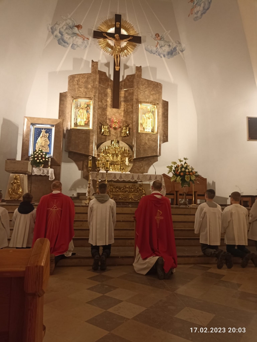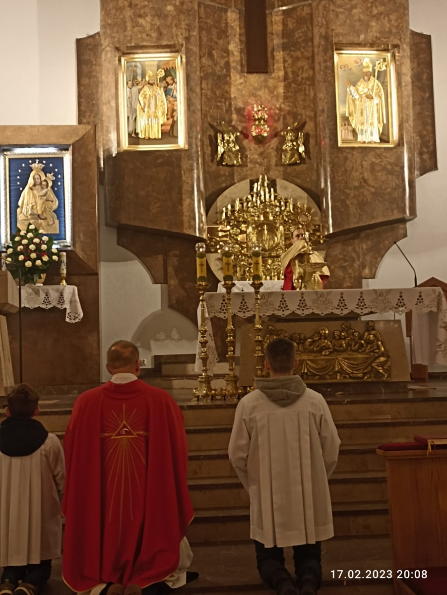 Na zakończenie Eucharystii został wystawiony Najświętszy Sakrament i odbyła się krótka Adoracja, podczas której modliliśmy się za młodzież, po czym nastąpiło błogosławieństwo Najświętszym Sakramentem.