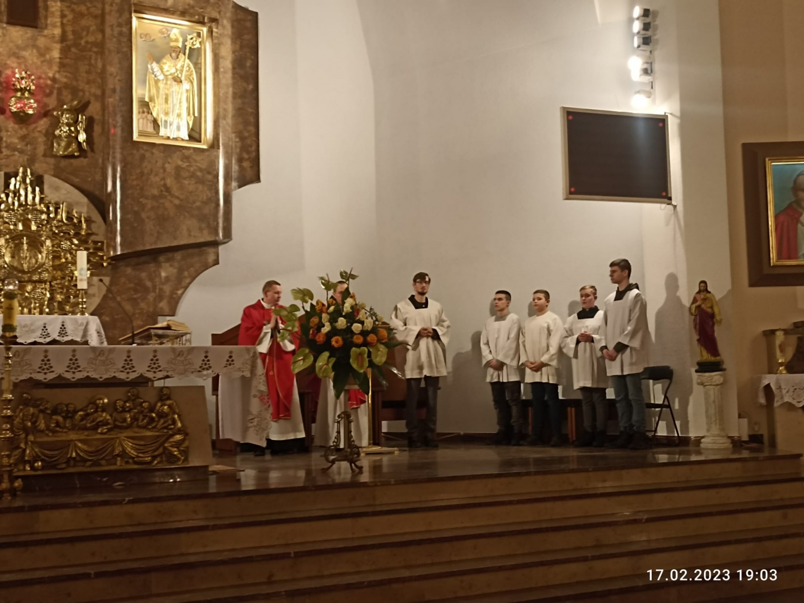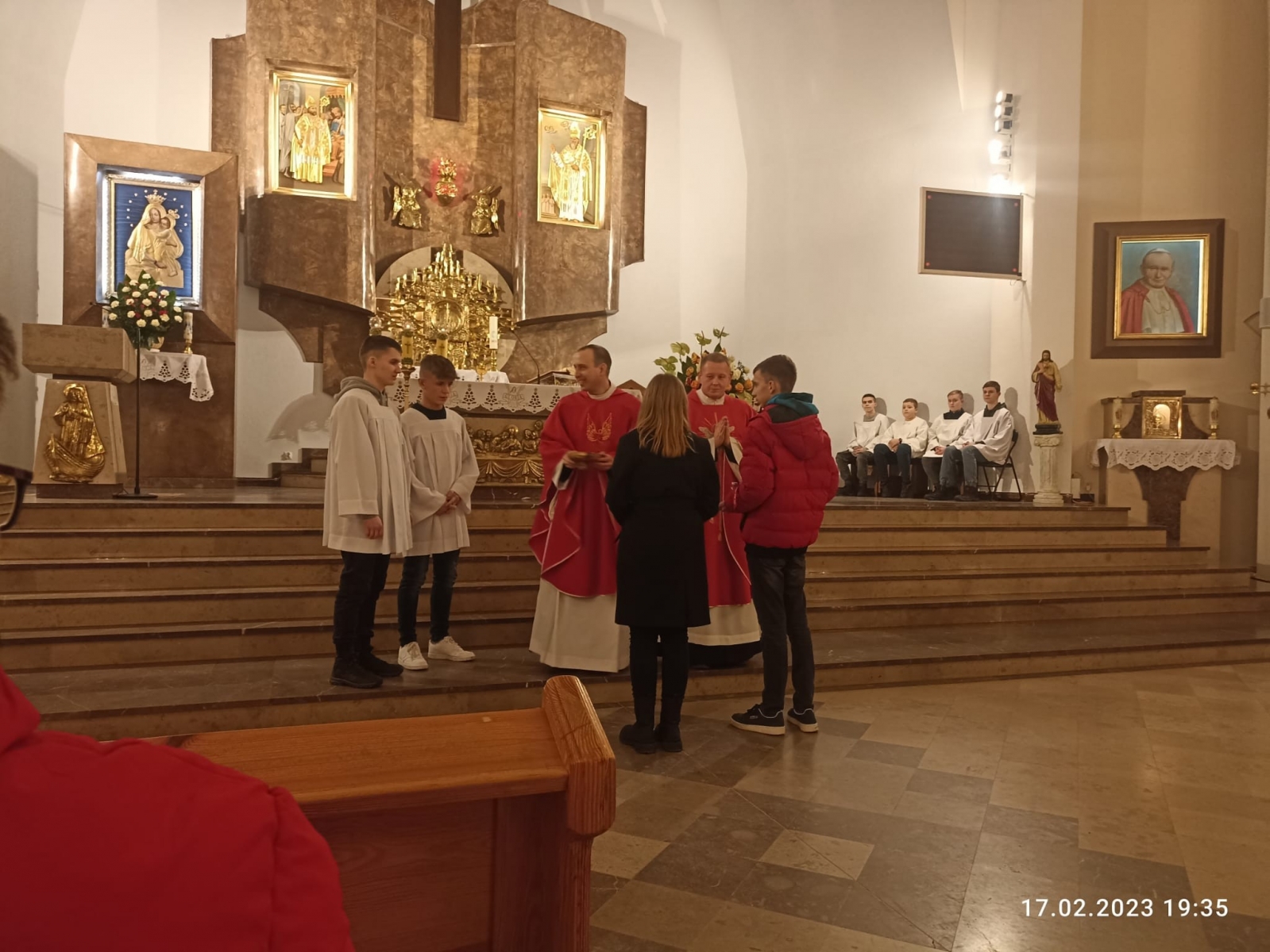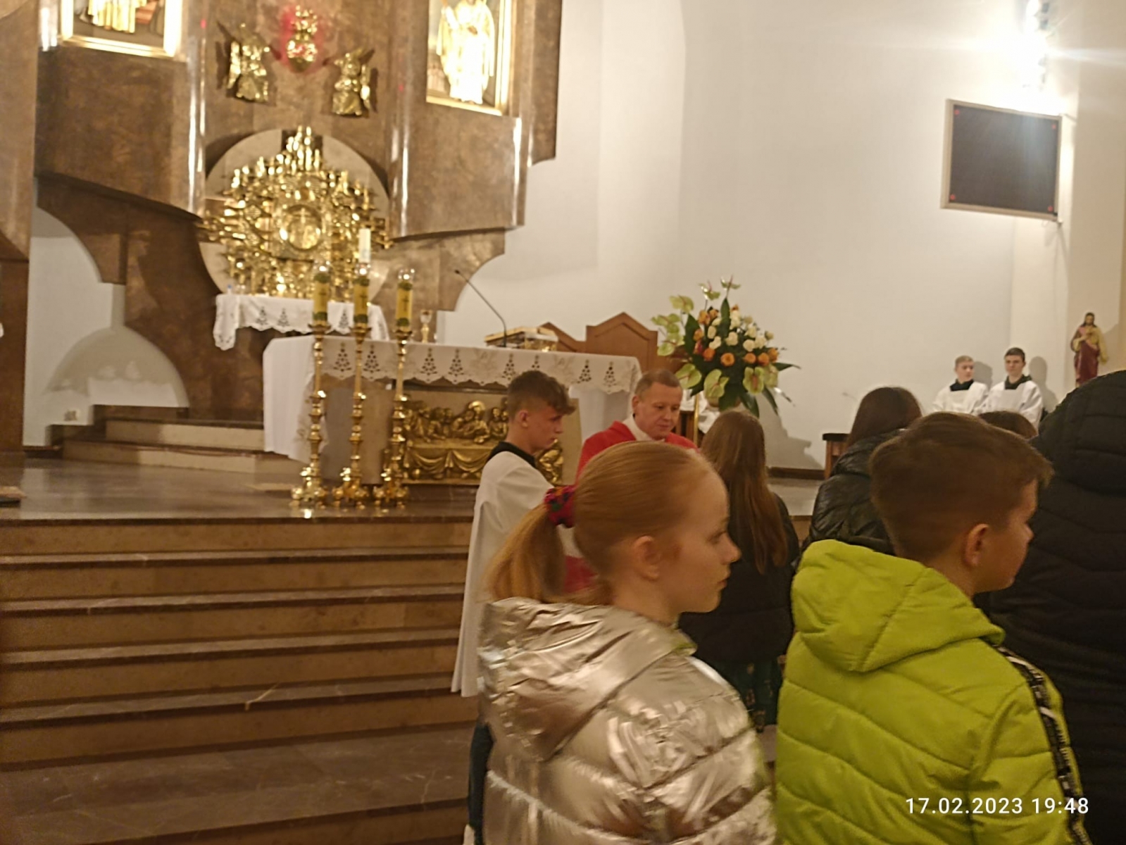 Na zakończenie Eucharystii został wystawiony Najświętszy Sakrament i odbyła się krótka Adoracja, podczas której modliliśmy się za młodzież, po czym nastąpiło błogosławieństwo Najświętszym Sakramentem.