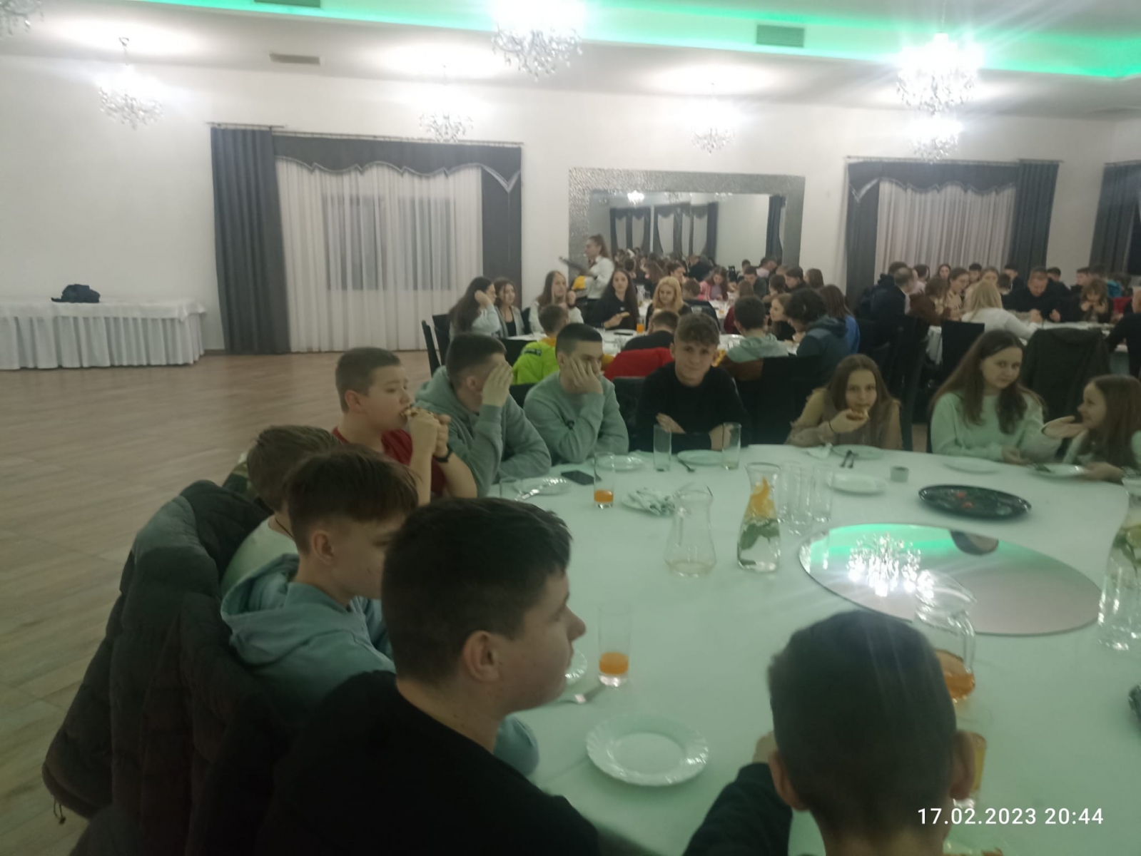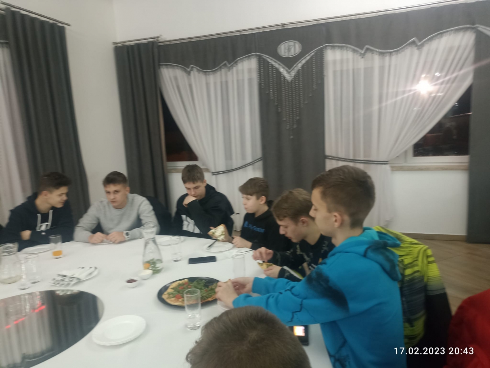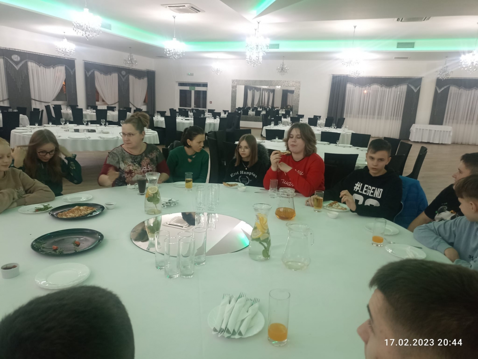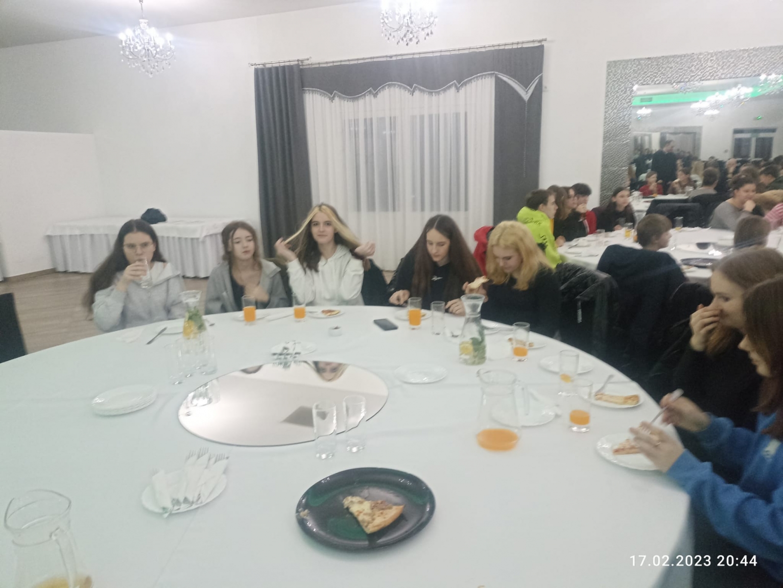 Po uczcie Eucharystycznej udaliśmy się na poczęstunek do Restauracji „Hacjenda”, gdzie czekała na nas pyszna pizza, słodkie napoje i herbata. W przerwie, młodzież z naszej parafii zebrała wszystkie chętne osoby na środku sali i przy akompaniamencie muzycznym, uczyła tańców chrześcijańskich.