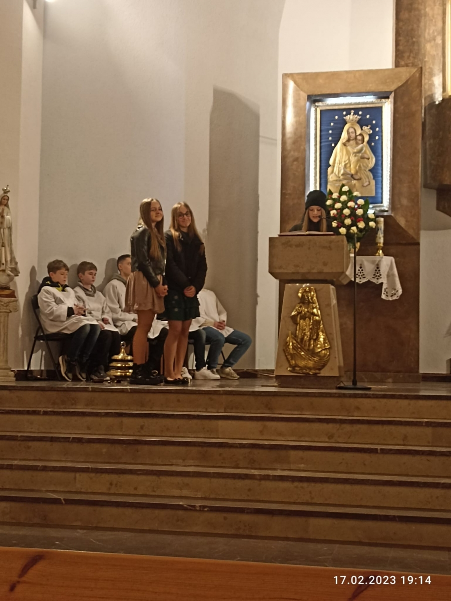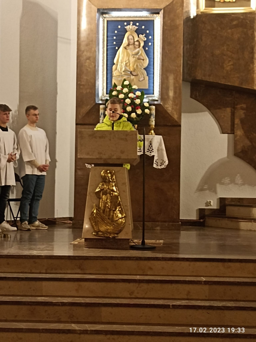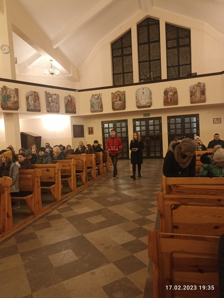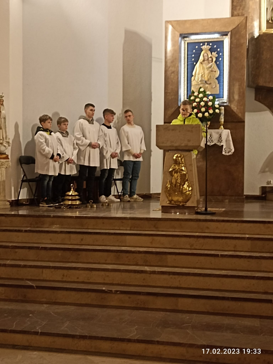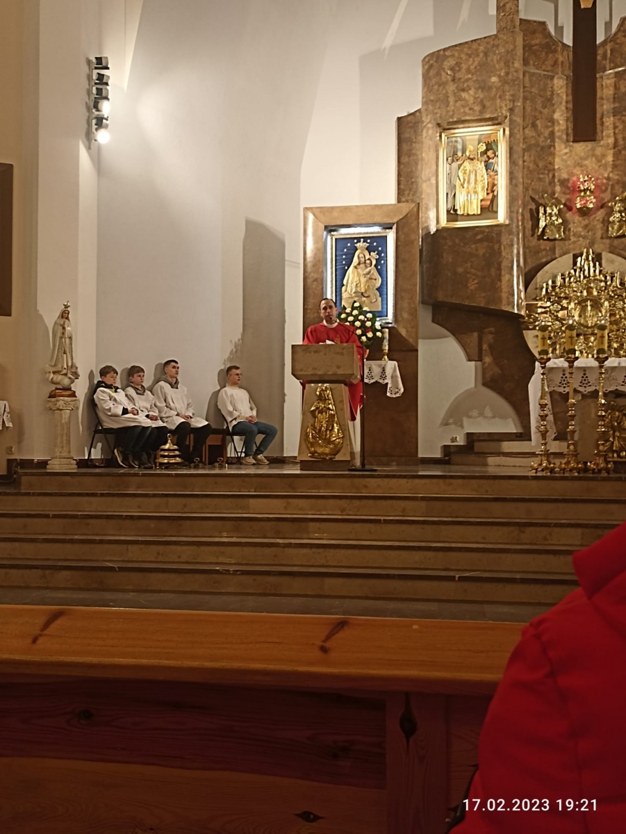 W piątek 17 lutego o godz. 19, w naszym Kościele parafialnym sprawowana była Eucharystia Młodych, na której zgromadziła się młodzież nie tylko z naszej parafii, ale także z całego dekanatu. Pan Jezus zgromadził przy stole Słowa Bożego i stole Eucharystycznym ok. 100 młodych serc. Na samym początku ks. Prałat Stanisław Płaszczyk serdecznie pozdrowił zgromadzoną w Kościele młodzież, ucieszył się ich obecnością oraz przedstawił krótką historię naszego Kościoła.