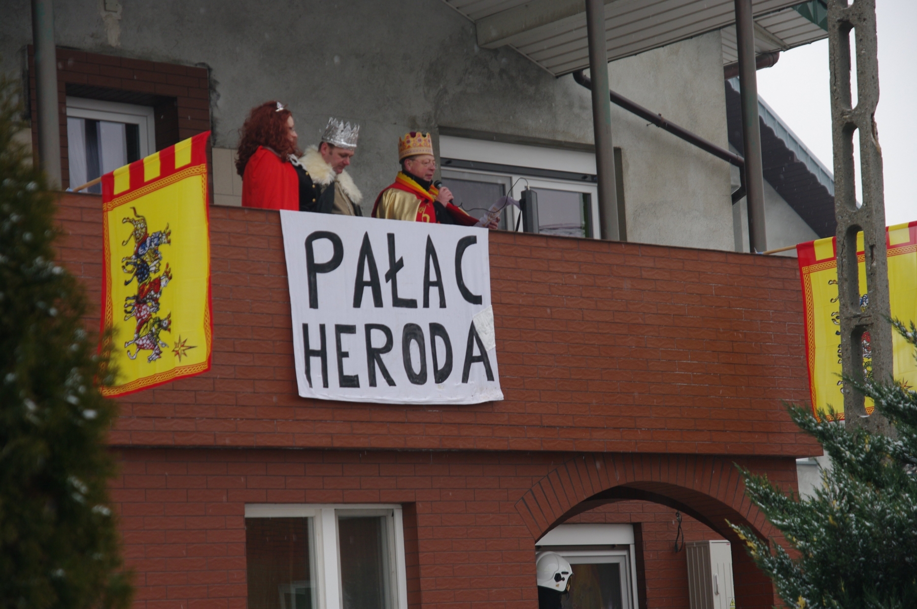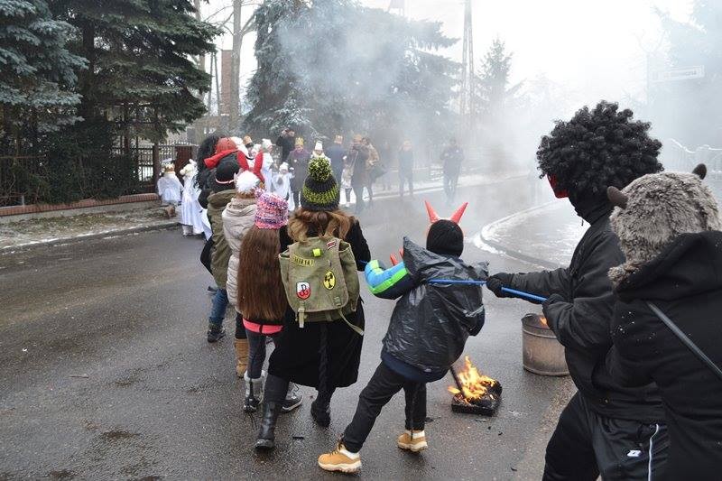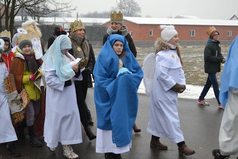 Zostały przedstawione scenki: dialog z królem Herodem, którego zagrał p. Grzegorz Kowalski z żoną Joanną jako Herodiadą, ks. Prałat odczytał proroctwo Micheasza. Kolejną scenką była walka dobra ze złem, aniołów z diabłami w scenerii piekła jaką przygotowali nasi strażacy. Gdy aniołowie pokonali diabłów weszliśmy wszyscy radośnie do świątyni gdzie Królowie złożyli pokłon Dzieciątku Jezus i Świętej Rodzinie. Państwo Katarzyna i Michał Grzelkowie wraz ze swoją maleńką Michalinką ukazali nam Maryję, Józefa i Jezusa. Podsumowaniem tego wydarzenia była msza święta w której uczestniczyliśmy. Chór z gimnazjum zaśpiewał pod kierunkiem p. Katarzyny Tomczyk piękne kolędy.