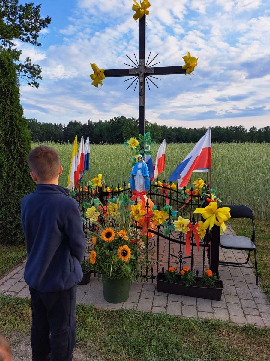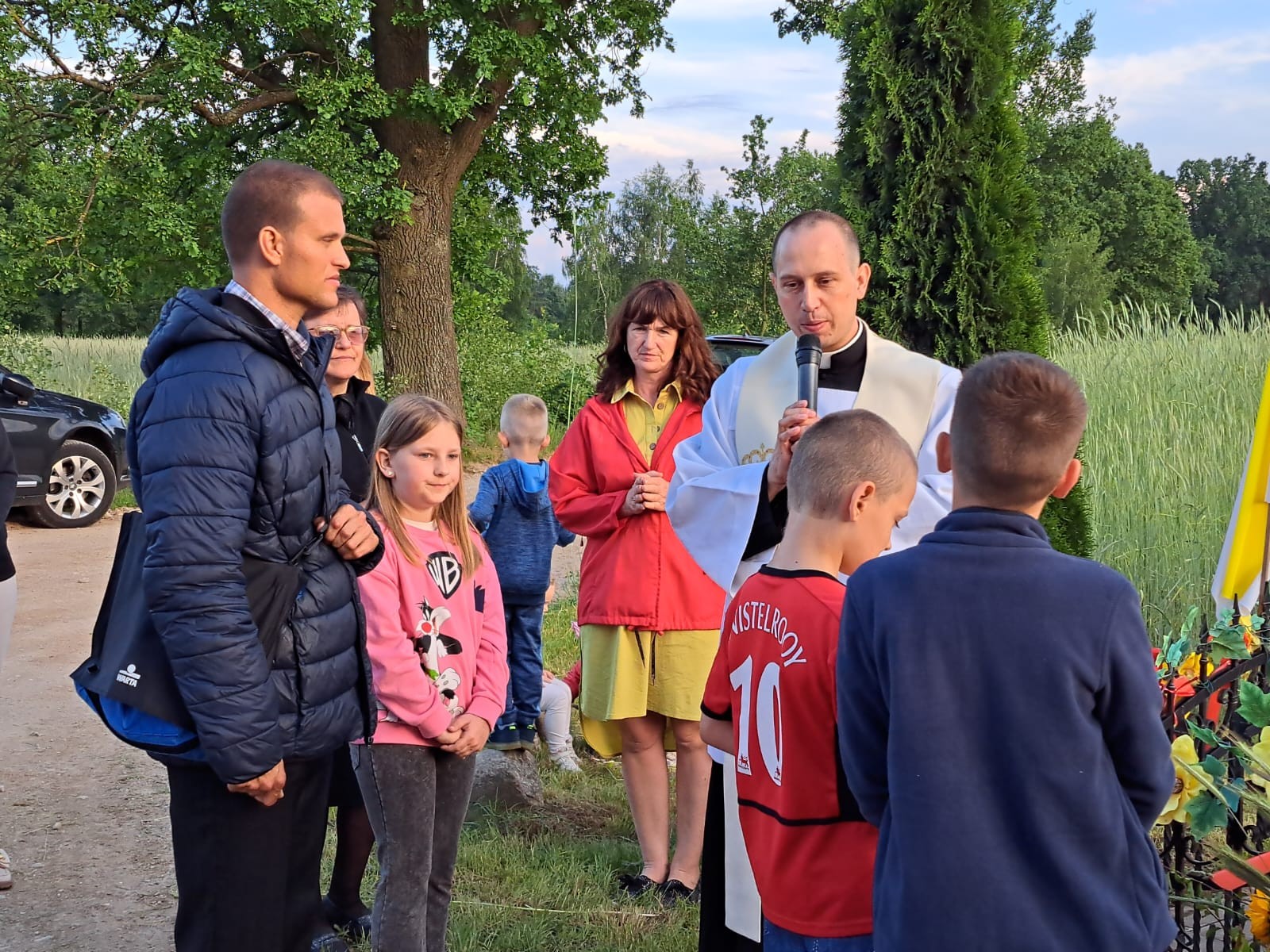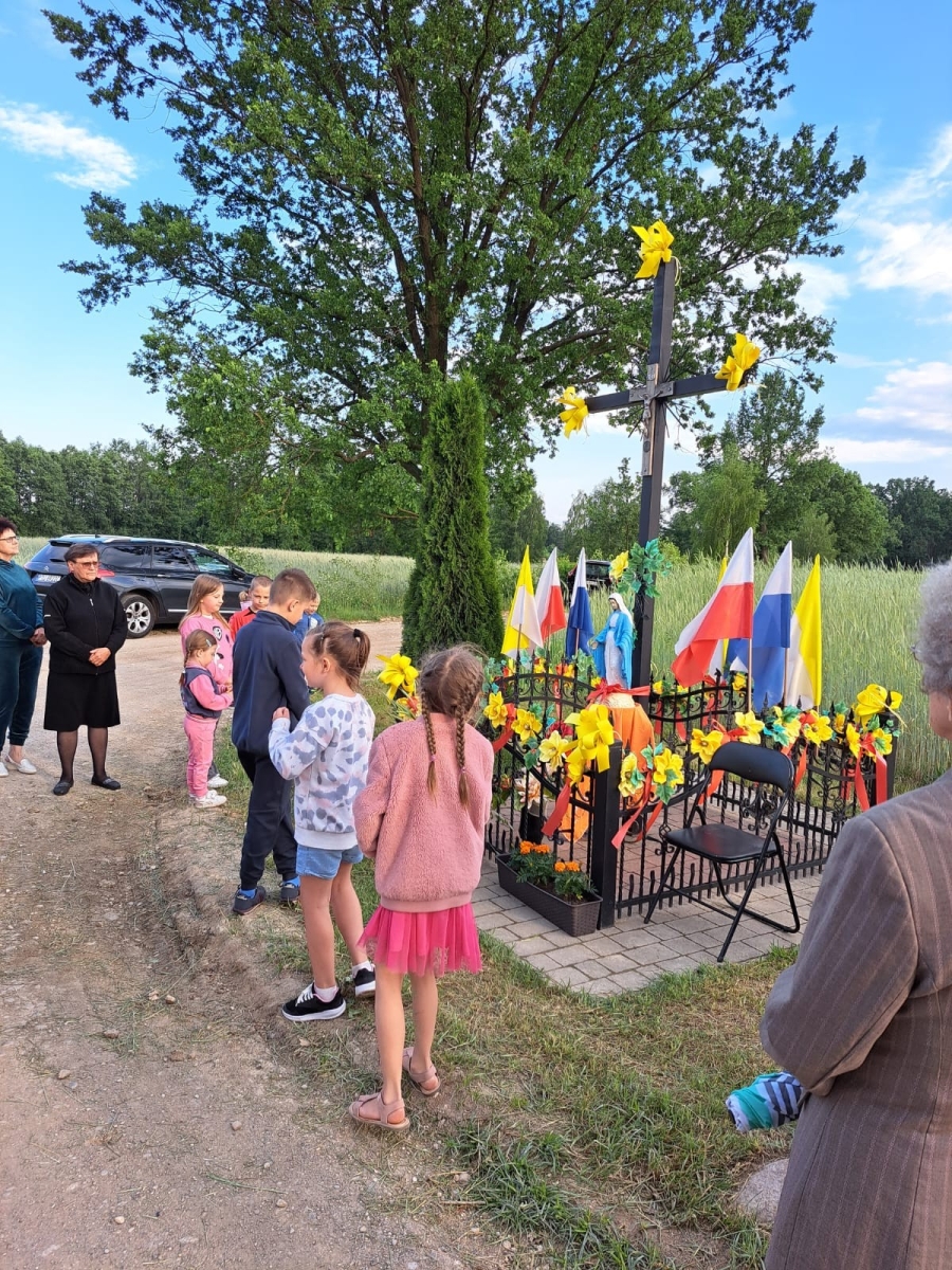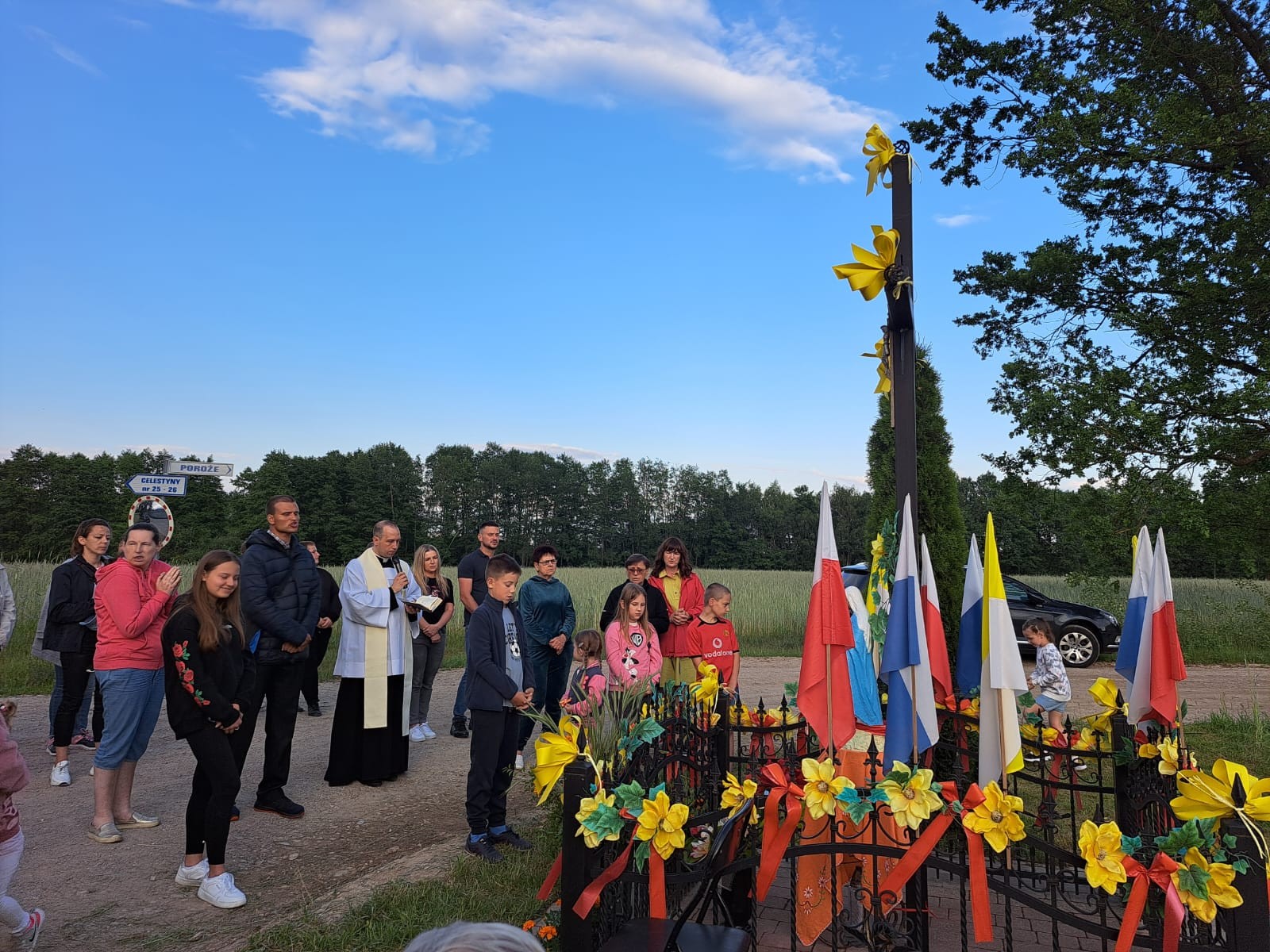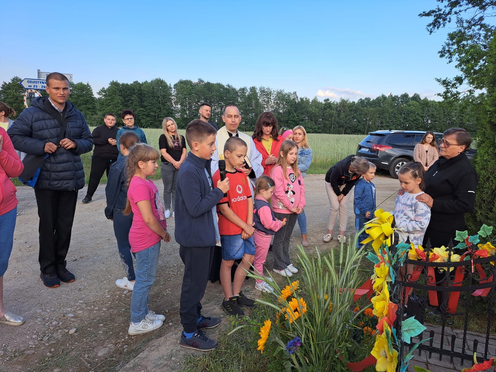 We wtorek, 28 maja odbyło się już ostatnie w tym roku nabożeństwo majowe w terenie. Tym razem zgromadziliśmy się wraz z dziećmi ze Świetlicy Parafialnej i ich rodzicami, a także z mieszkańcami Celestyn i nie tylko, przy Krzyżu w Celestynach. Po wyśpiewaniu Litanii Loretańskiej modliliśmy się w różnych potrzebach naszych serc, szczególnie za dzieci, zwłaszcza te, które już w najbliższą sobotę przystąpią do pierwszej spowiedzi świętej, a w niedzielę przyjmą do swoich serc Pana Jezusa w Komunii Świętej. Polecaliśmy chorych i cierpiących, jak również modliliśmy się w intencji powołań kapłańskich, za nowo wyświęconych kapłanów, jak również w intencji kapłanów posługujących w parafii Malanów.