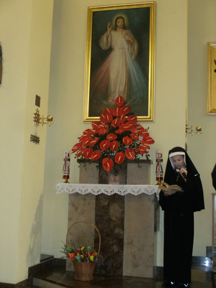 Po Mszy świętej młodzież przybliżyła wszystkim tajemnicę Bożego Miłosierdzia na podstawie Dzienniczka św. Faustyny i Encykliki św. Jana Pawła II. oraz orędzie do młodych papieża Franciszka