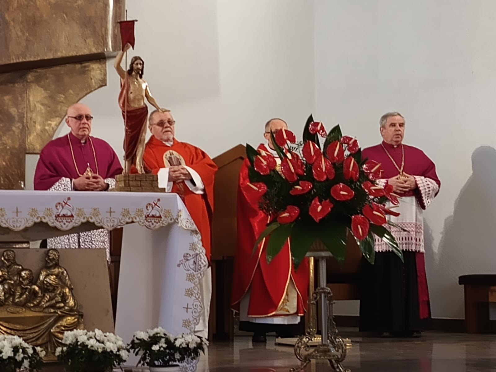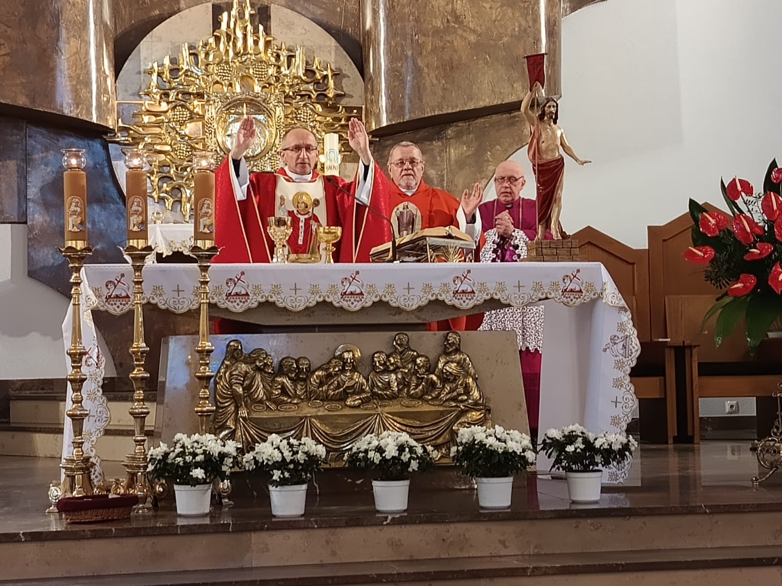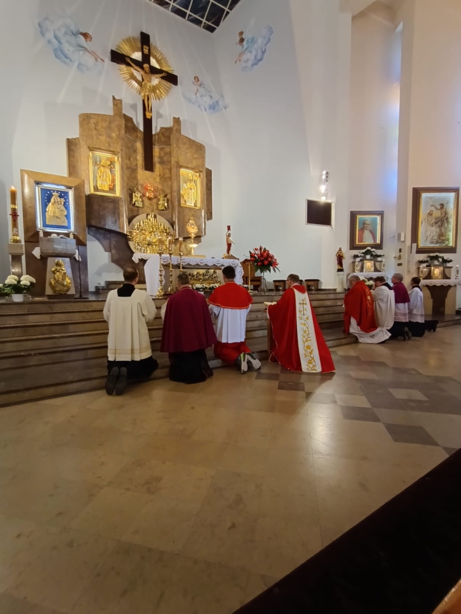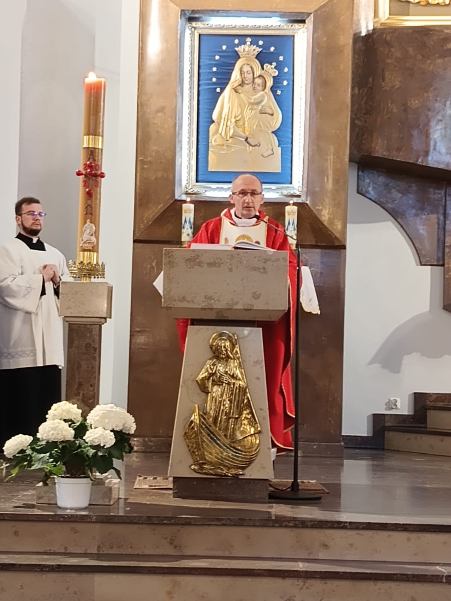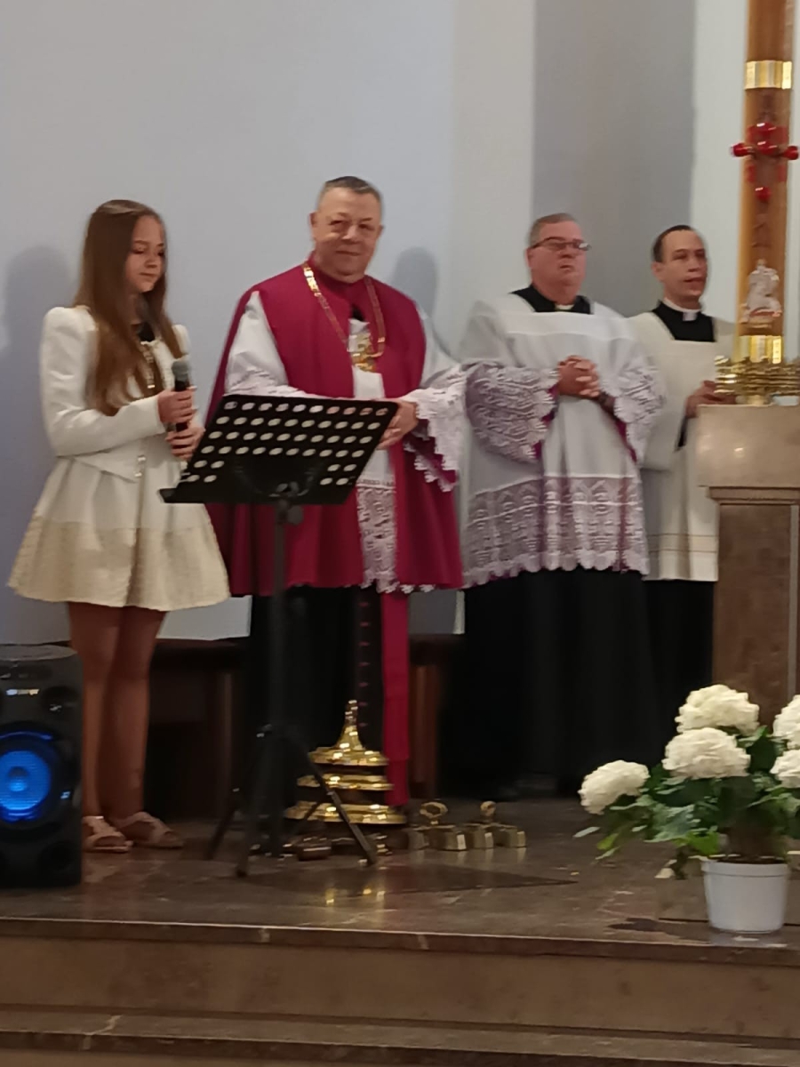 Dnia 8 V 2023 r. przeżywaliśmy w naszej wspólnocie parafialnej odpust ku czci św. Stanisława, Biskupa i Męczennika, Patrona naszej parafii i nowego Kościoła. Sumie odpustowej przewodniczył i wygłosił homilię, ks. Proboszcz Robert Różański, nasz rodak, przeżywający jubileusz 25-lecia kapłaństwa. Na zakończenie Eucharystii nie zabrakło życzeń i kwiatów, zarówno dla Czcigodnego Jubilata, ks. Roberta Różańskiego, jak również dla ks. Prałata Stanisława Płaszczyka, który w tym dniu świętuje swoje imieniny. Po zakończonej Eucharystii każdy wierny otrzymał od ks. Roberta pamiątkowy obrazek jubileuszowy.