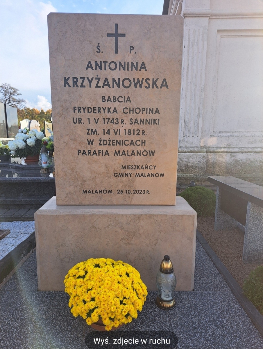 W piątek, 17 XI o godz. 15.00 na cmentarzu parafialnym w Malanowie nastąpi odsłonięcie pomnika Śp. Antoniny Krzyżanowskiej, babci Fryderyka Chopina. Natomiast o godz. 17.00 w Hali Sportowej w Malanowie przy ul. Parkowej 29 - Sala Szklana odbędzie się koncert "Wieczór przy muzyce klasycznej". Zapraszamy do udziału.