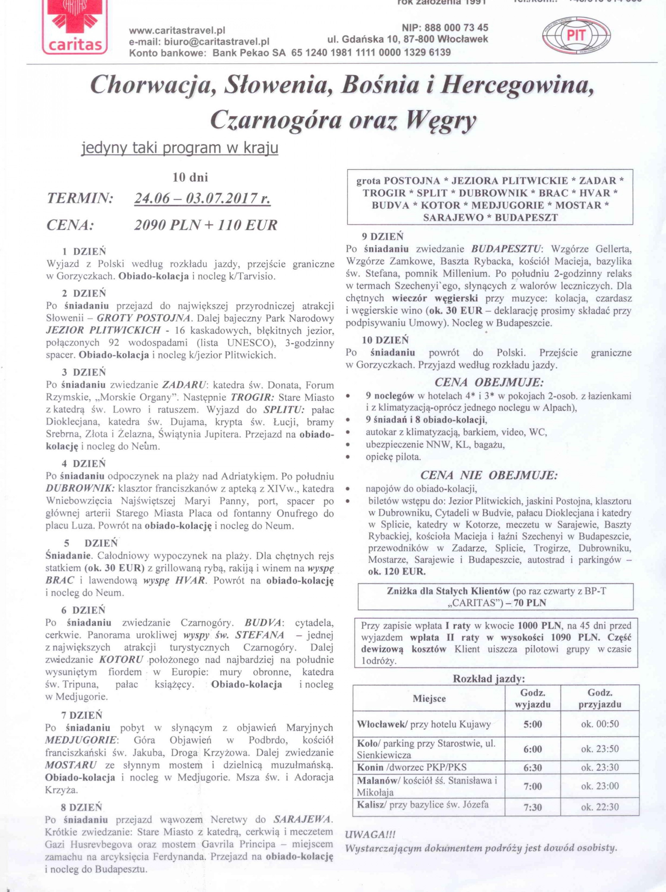 Jesteś tutaj: Strona główna » Parafia Malanów » Aktualności » Pielgrzymka do Chorwacji, Słowenii, Bośni i Hercegowiny, Czarnogóry oraz Węgier