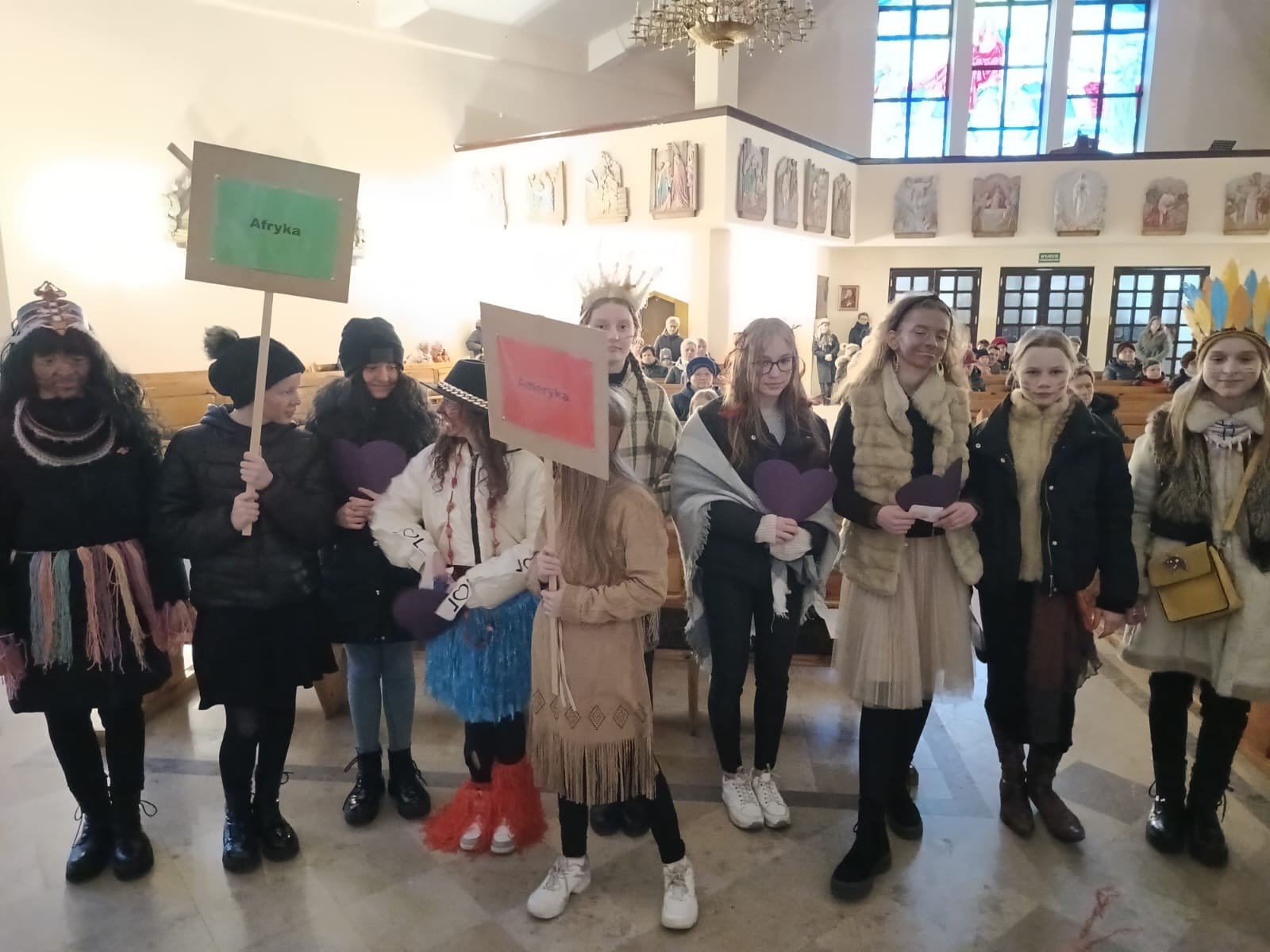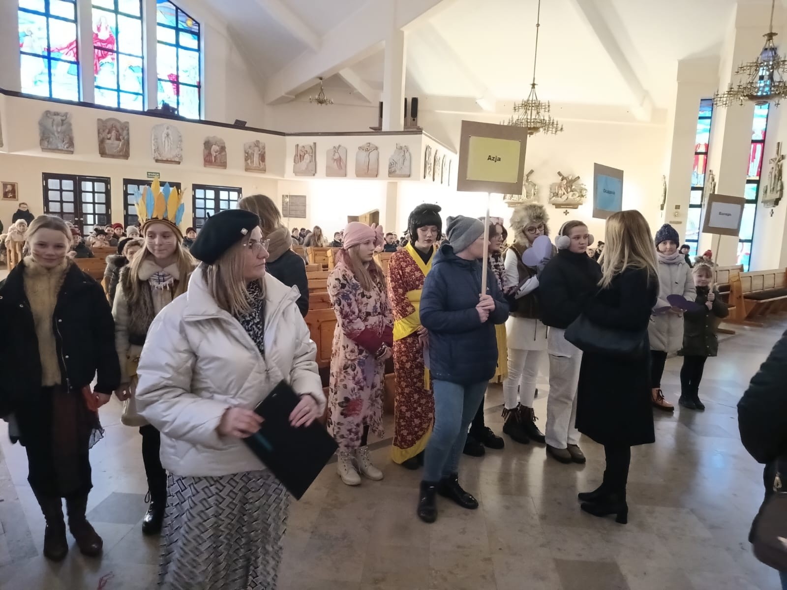Pięknie przygotowane stroje dzieci, symbolizowały przedstawicieli wszystkich kontynentów, gdzie Misjonarze głoszą prawdę o Zbawieniu i zachęcają aby każdy z nas stał się właśnie takim Misjonarzem.