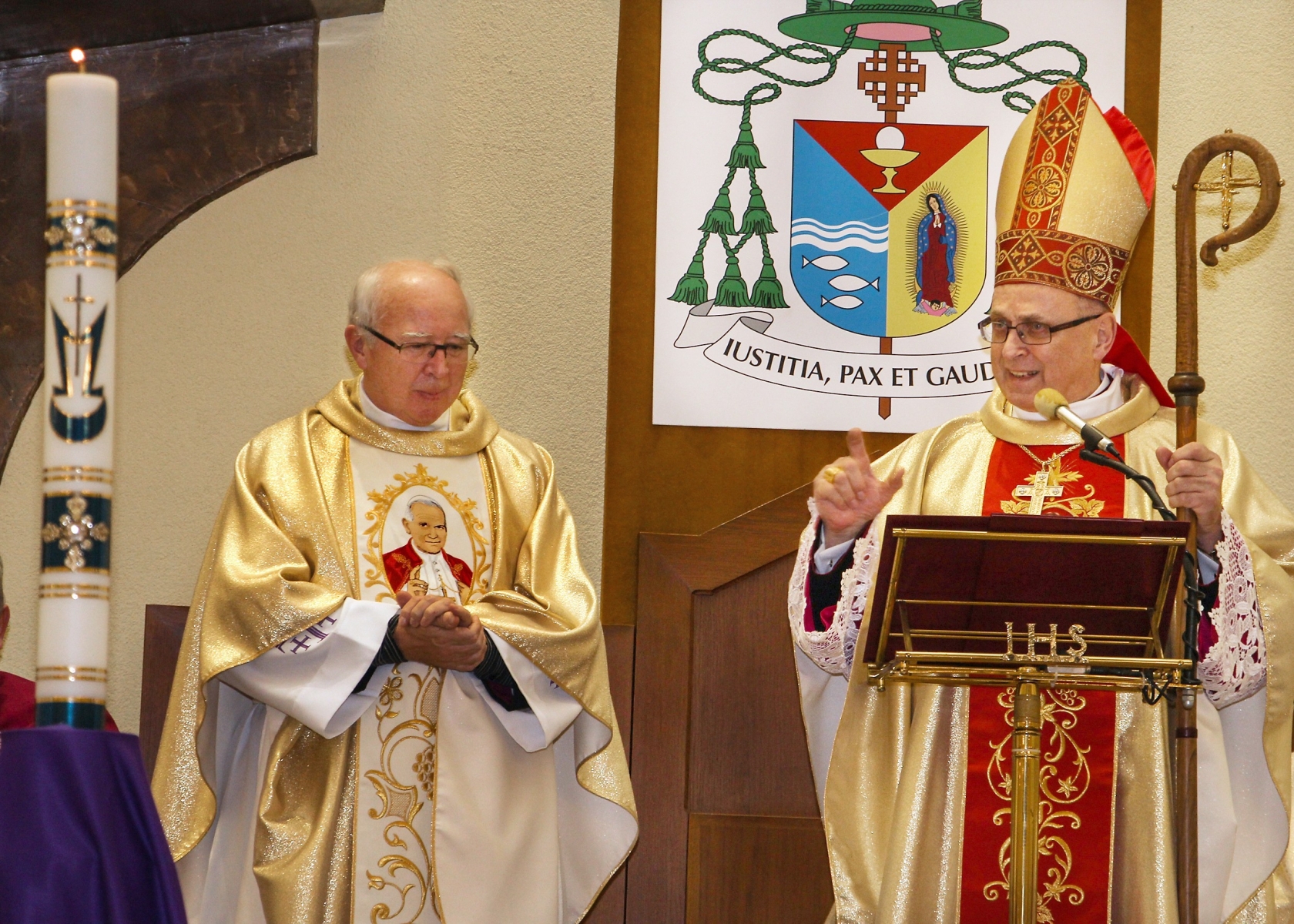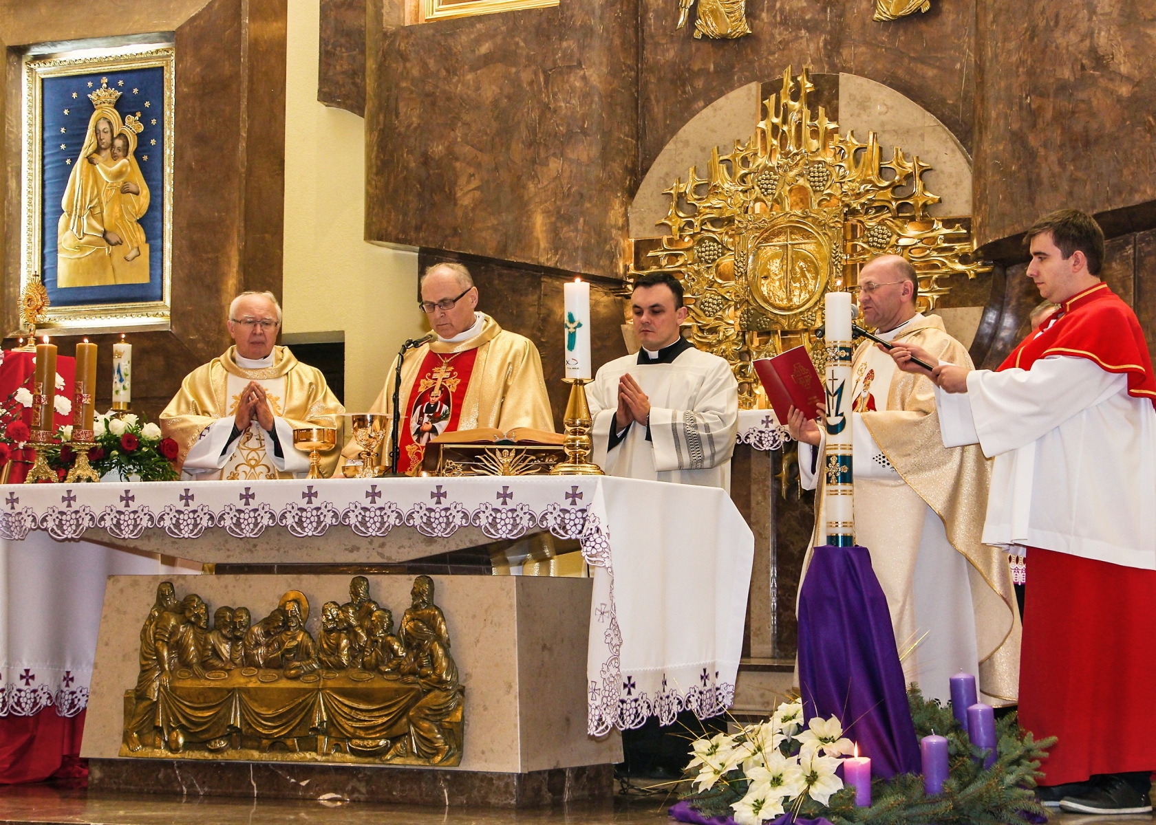 W darach ołtarza Wspólnota Świetlicy Parafialnej ofiarowała stułę z symbolami Roku Miłosierdzia. Stuła jest symbolem działania łaski uświęcającej Jezusa Chrystusa przez osobę kapłana. To dzięki posłudze kapłanów możemy dostępować miłosierdzia Bożego. Otwórzmy się na te łaski w Roku Miłosierdzia. Ks. Biskup Ordynariusz podkreślił podczas tej doniosłej uroczystości rolę kapłanów w historii naszej Ojczyzny. Te piękne życiorysy jak życie i męczeństwo bł. ks. Jerzego Popiełuszki powinny nam stale przypominać dziedzictwo i tożsamość naszego Narodu, który od 1050 lat trwa w Jezusie Chrystusie.