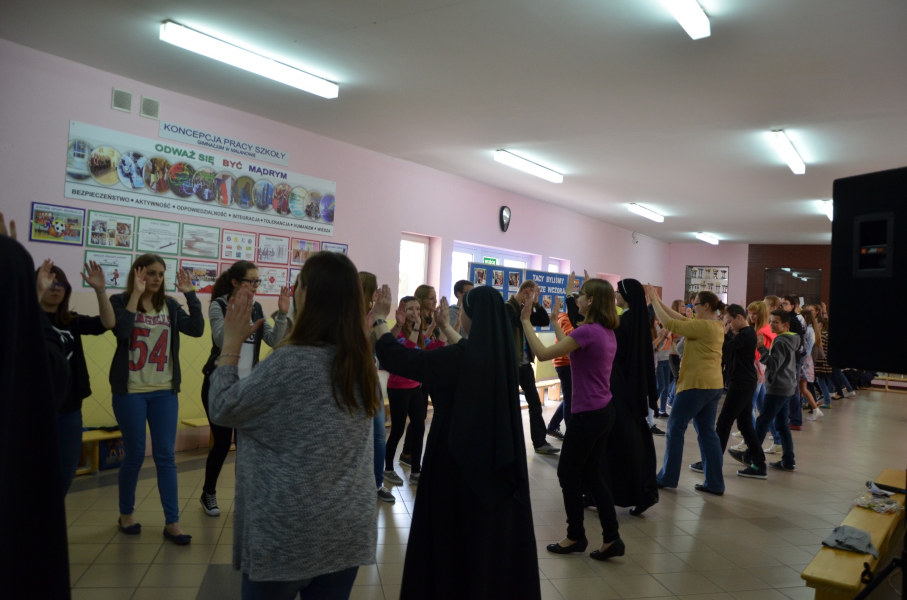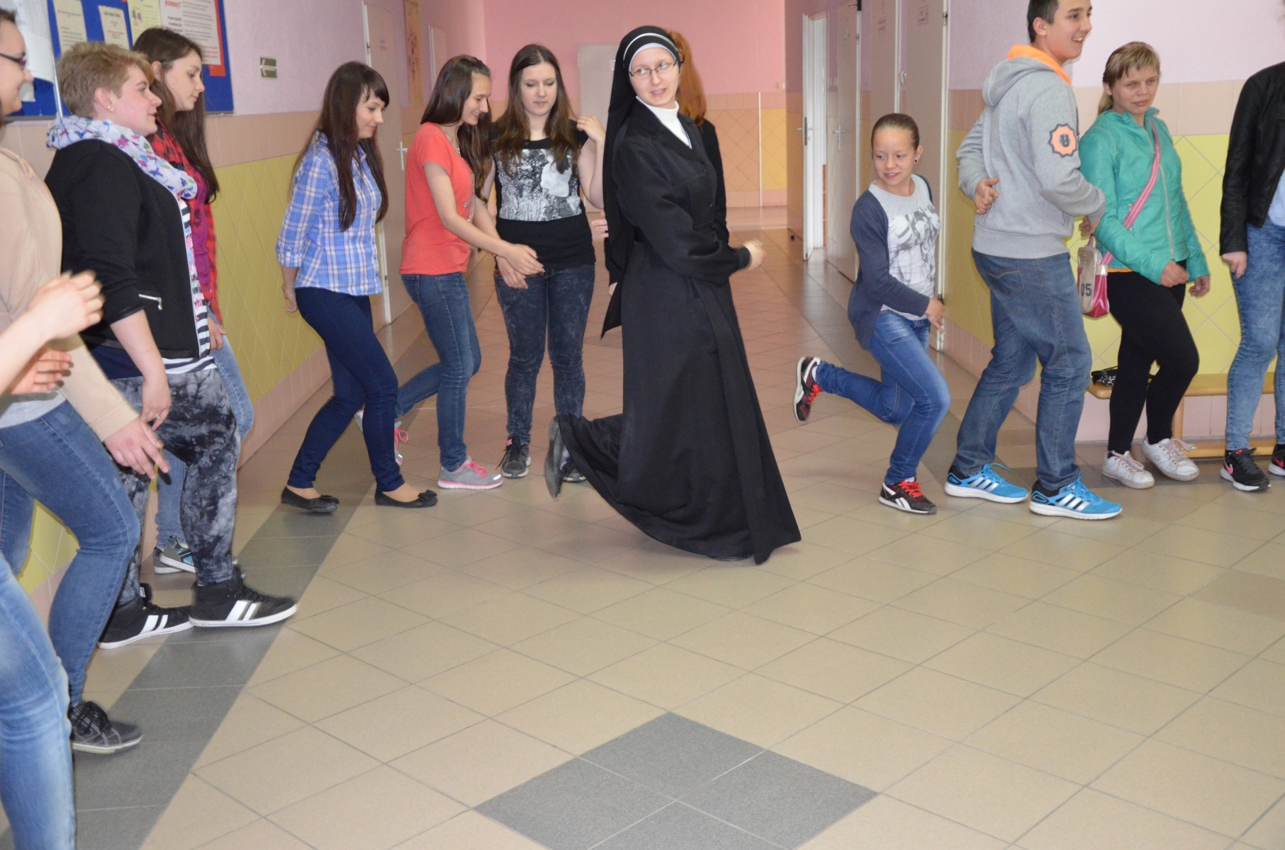 W niedzielę 17 maja kontynuowaliśmy nasze spotkanie. Rano byliśmy na Mszy świętej, na jej zakończenie Siostra Hiacynta Dorula dała świadectwo swojej wiary i zachęciła młodzież do kontynuacji przygotowań do ŚDM – Kraków 2016. Kasia uczennica gimnazjum potwierdziła zaproszenie krakowskiej młodzieży do wspólnego przeżywania tego czasu w gościnnych progach domu Sióstr Prezentek. Po Mszy świętej tańcem wyrażaliśmy Bogu swoją radość i wdzięczność .