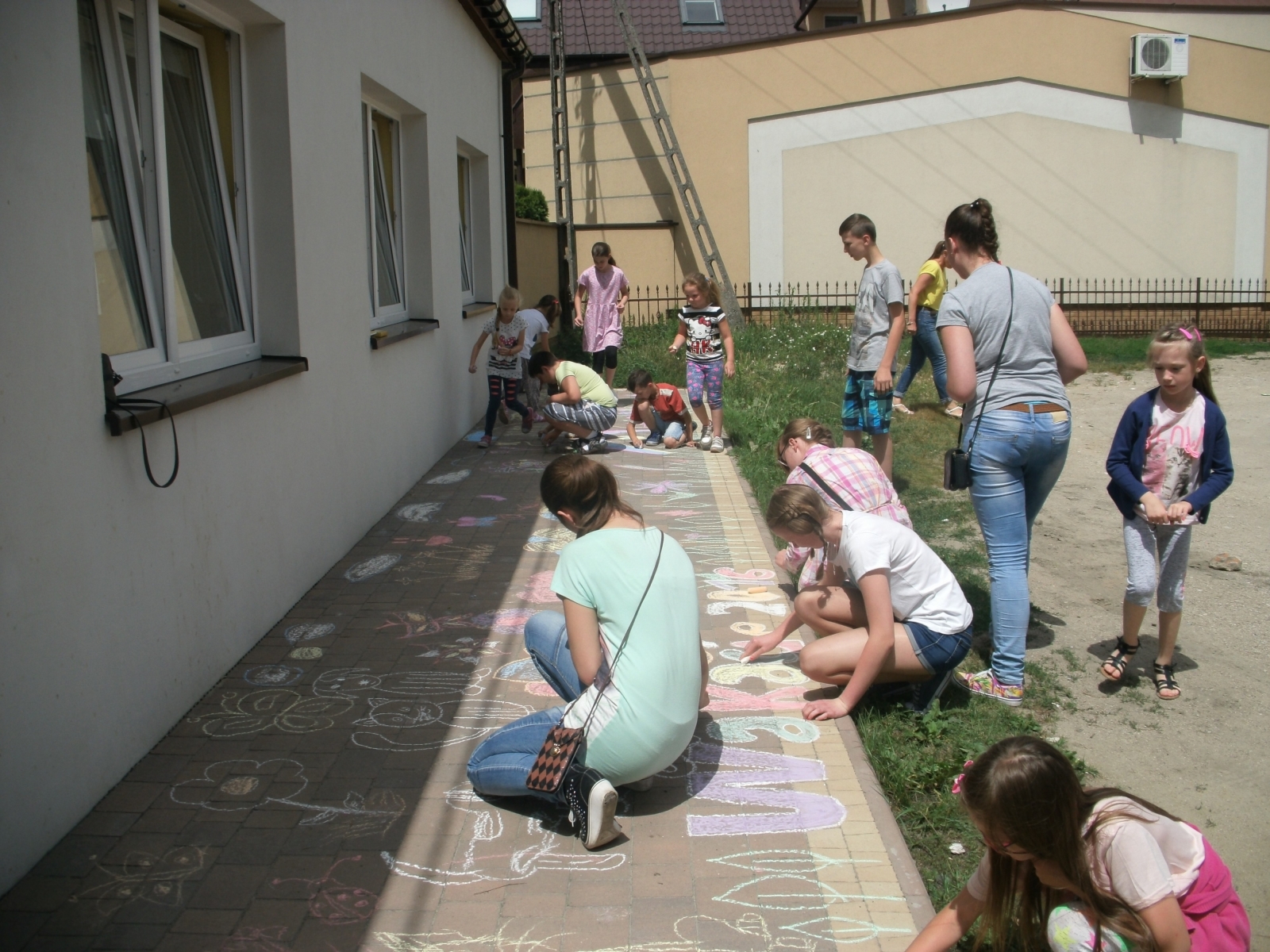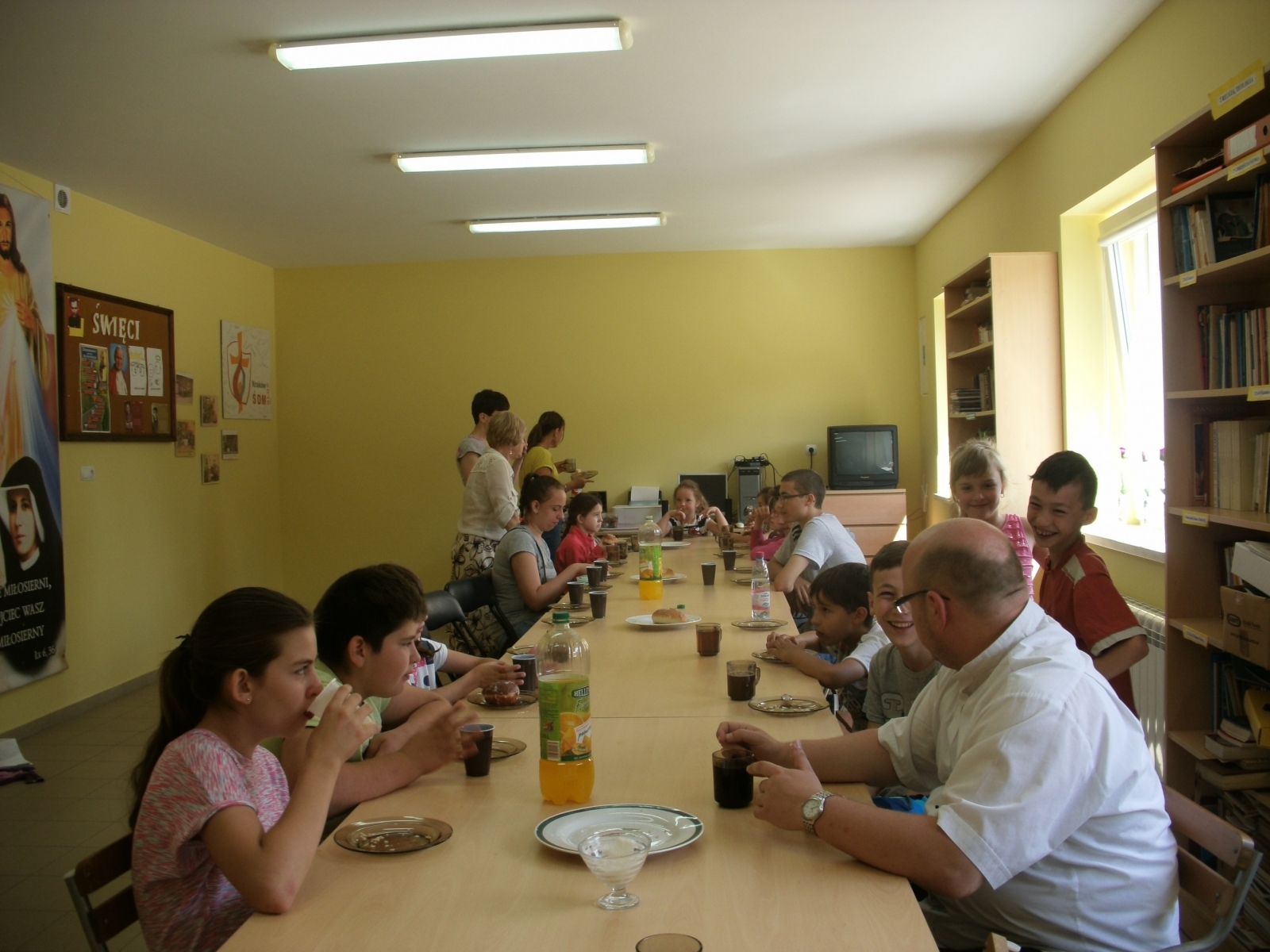Od 4 do 8 lipca codziennie od godz. 9.oo do 15.oo trwały zajęcia. Na początku organizowaliśmy sobie zabawy na miejscu. Ksiądz Prefekt Marcin odprawił Mszę świętą na rozpoczęcie półkolonii. Prosiliśmy Pana Jezusa, by te parę dni wakacji uczynił dla nas bezpiecznymi i pełnymi radości. Potem w salce w księgach parafialnych odszukiwaliśmy wpisów dotyczących naszego chrztu. Ten rok jest Jubileuszem 1050 - lecia Chrztu Polski, warto więc zapamiętać swój dzień chrztu, który nas włączył do wielkiej Rodziny Bożej. Były też zabawy, prace plastyczne i smaczny obiad w Hacjendzie ufundowany przez Państwa Kubackich – dziękujemy.