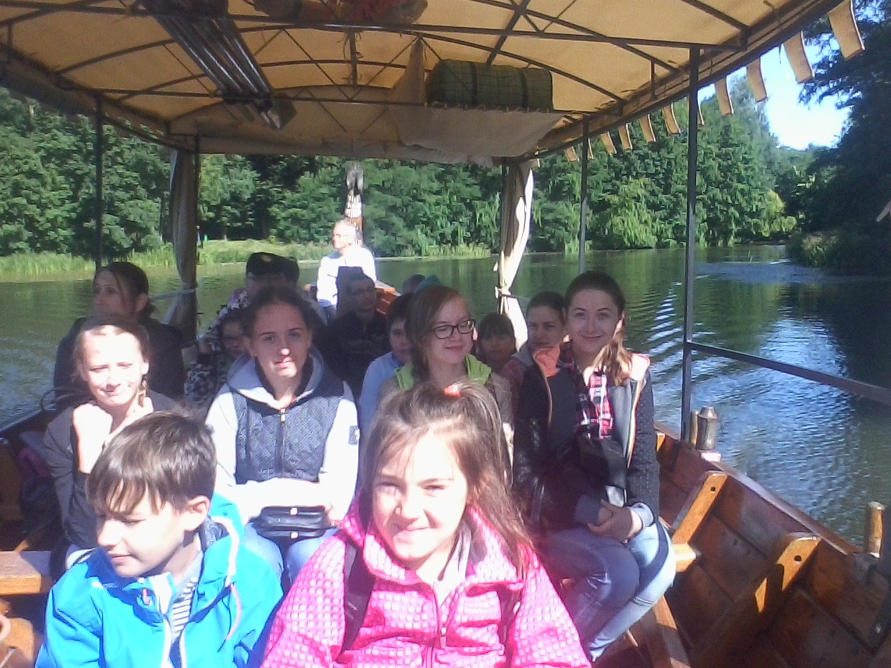 W czwartek pojechaliśmy do Kalisza. Od teatru płynęliśmy łodzią św. Wojciecha na Zawodzie, gdzie pan Mieczysław opowiedział nam ciekawą historię początków grodu piastowskiego Calisia obecnego Kalisza. W kościółku św. Wojciecha obejrzeliśmy kopię drzwi gnieźnieńskich i uwiecznionym na nich żywot św. Wojciecha. Potem wróciliśmy łodzią do teatru. Nawiedziliśmy sanktuarium św. Józefa, gdzie ks. Marcin opowiedział nam historię męczeństwa kapłanów z naszej diecezji w obozie w Dachau w czasie II wojny światowej.