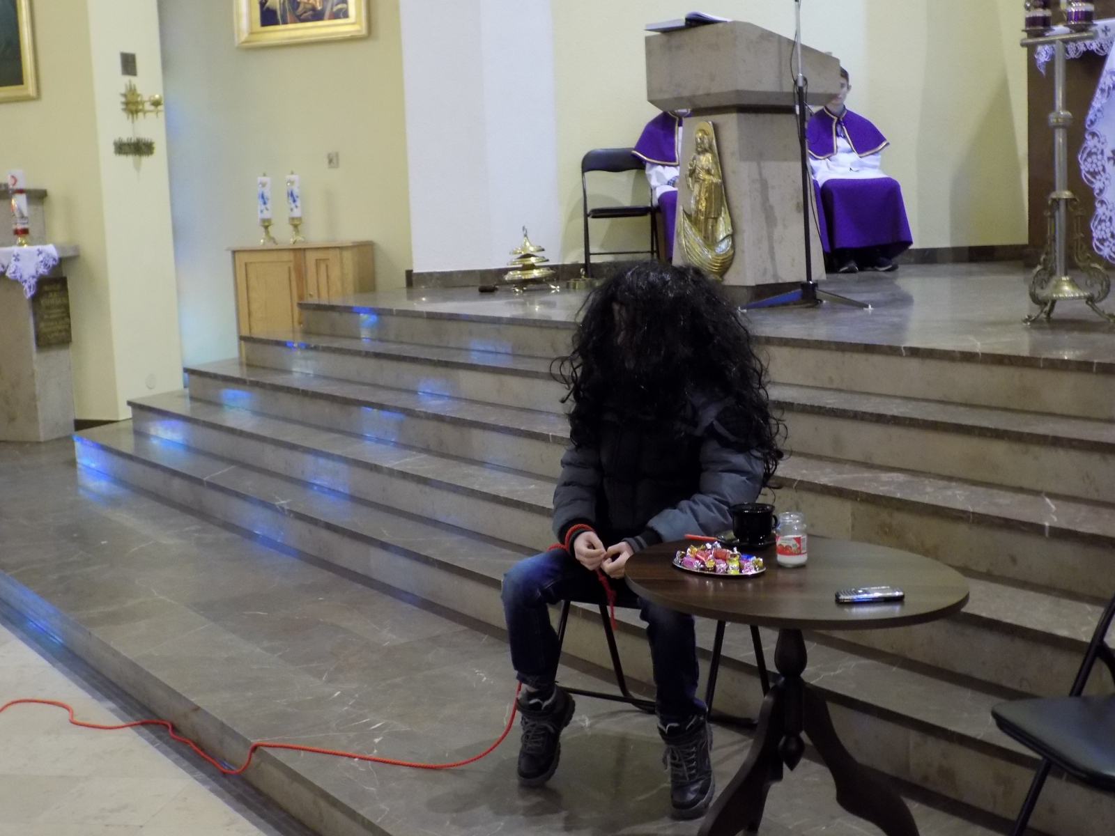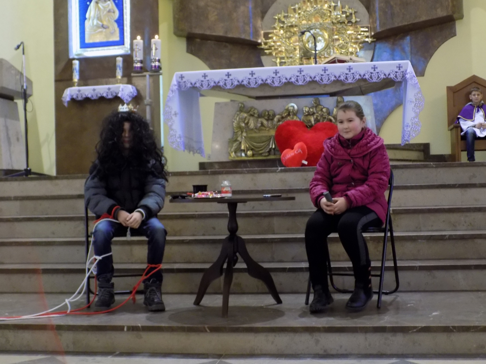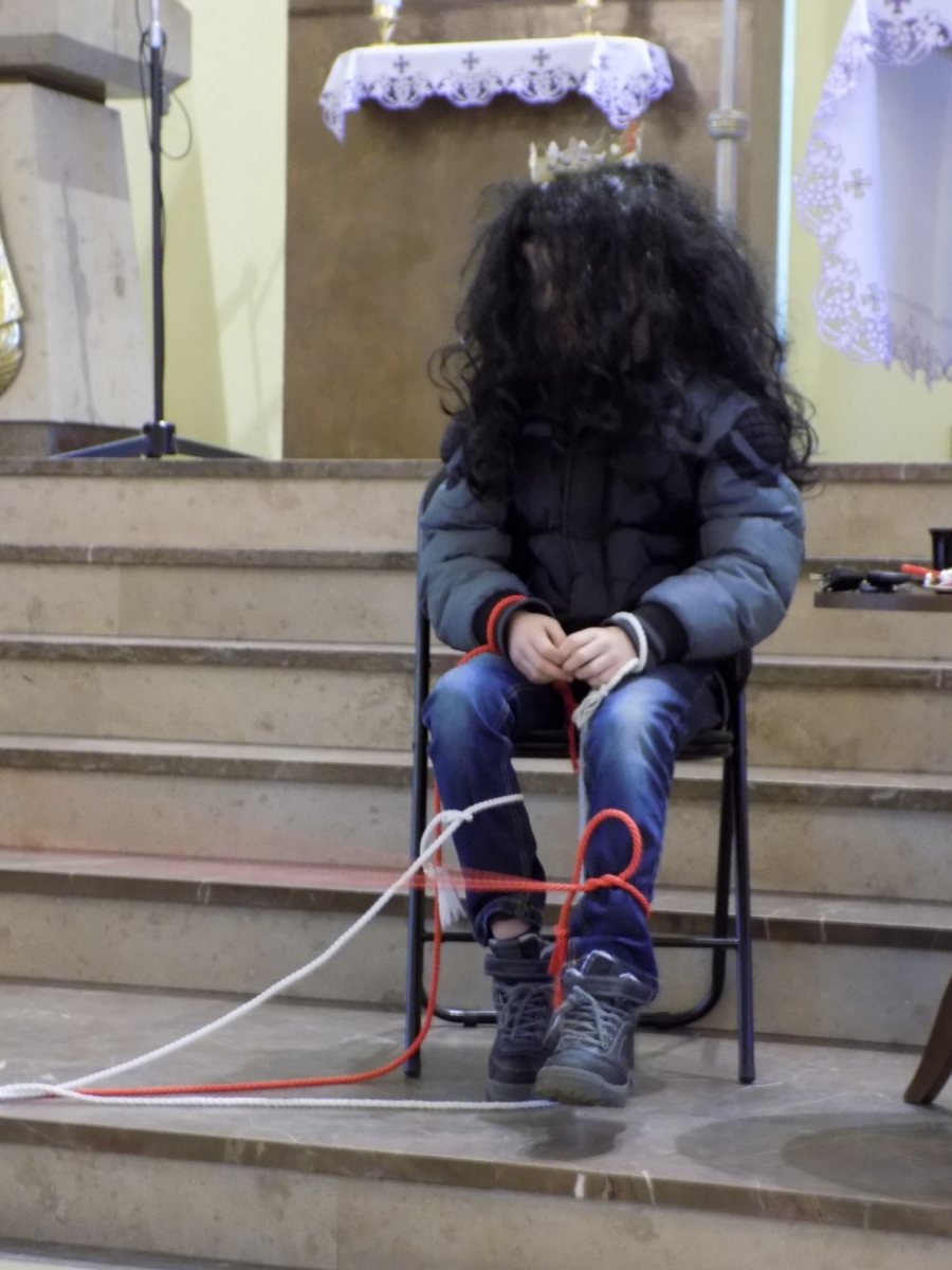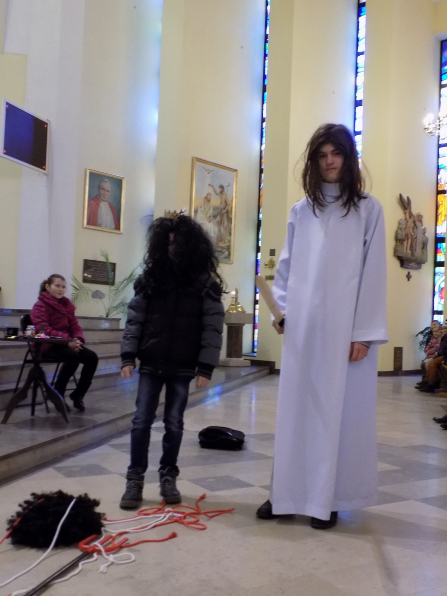 I nie wiadomo skąd, nagle pojawił się sam Pan Jezus z mieczem ręku i szybko przeciął szatańskie więzy. Tu już „Sprzedawca Marzeń” został zdemaskowany i musiał szybko uciekać. Zatrzymał się na chwilę przy mikrofonie i wykrzyczał: „Znów mi się nie udało… dobra jadę do Turku… może tam znajdę jakiegoś naiwniaka!”