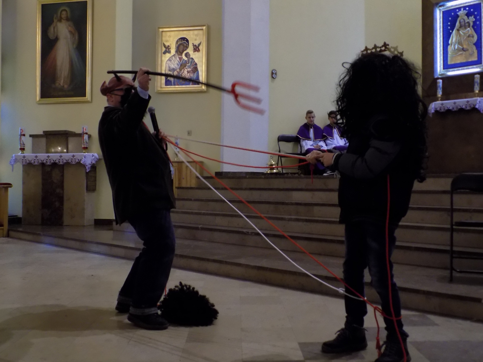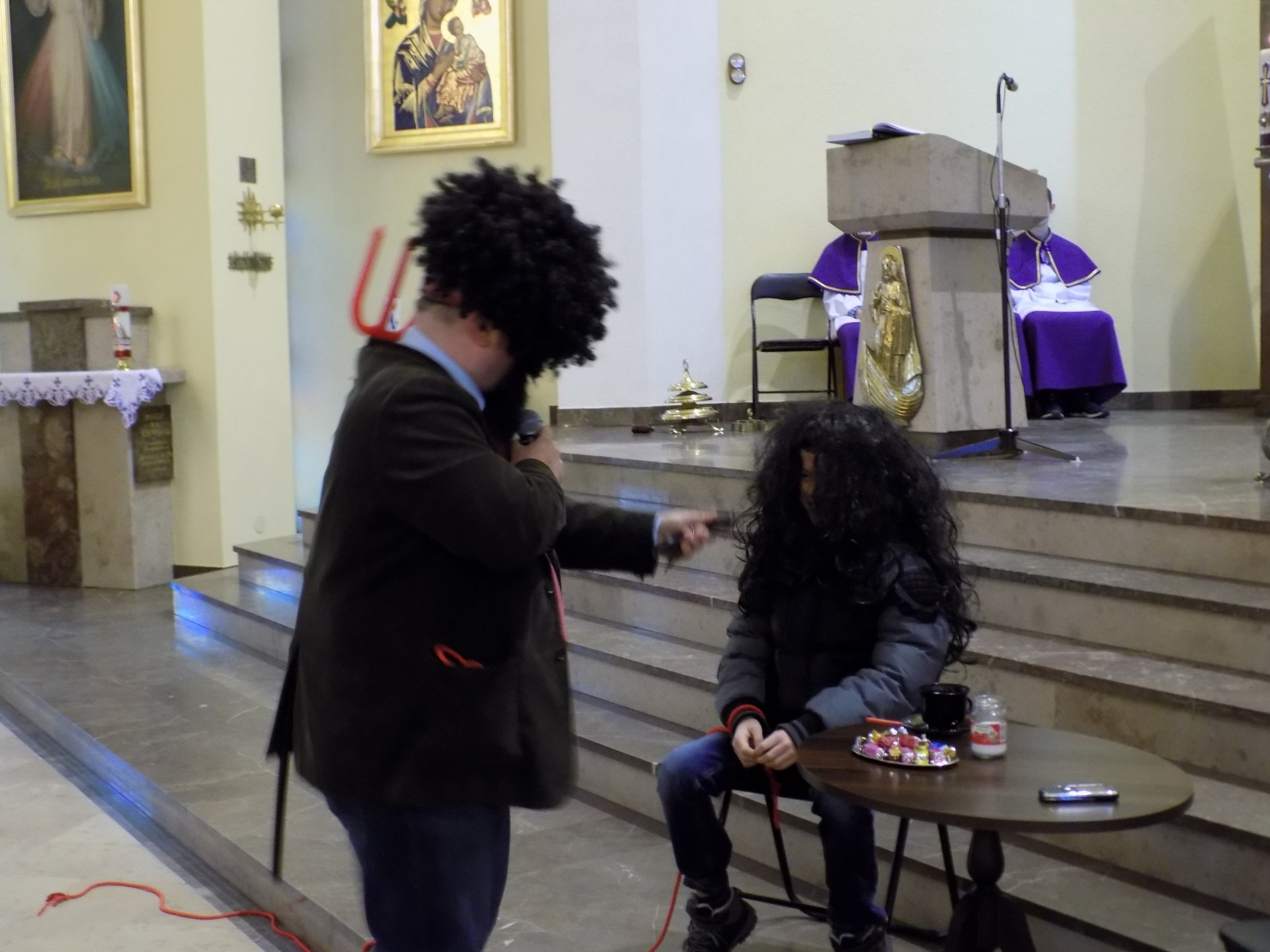 Tymczasem okazało się, że pod przebraniem „Sprzedawcy” kryje się diabeł! Chwycił szybko młodego człowieka w swoją sieć. Dosłownie opętał go gdy spełniał jego marzenia. Wyciągał już swoje diabelskie widły by zabrać ze sobą ofiarę…