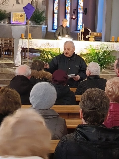 Ks. Mariusz Smoliński odprawił Mszę św. w intencji nas i wszystkich parafian. Potem pojechaliśmy do Ołtarzewa. W Wyższym Seminarium Duchownym Księży Pallotynów obejrzeliśmy spektakl Misterium Męki Pańskiej w wykonaniu Alumnów tegoż seminarium. Misterium pozwoliło nam przeżyć głęboko Mękę i Śmierć naszego Pana Jezusa Chrystusa i motywowało nas do uczestnictwa z wiarą w wydarzeniach Paschalnych Wielkiego Tygodnia.