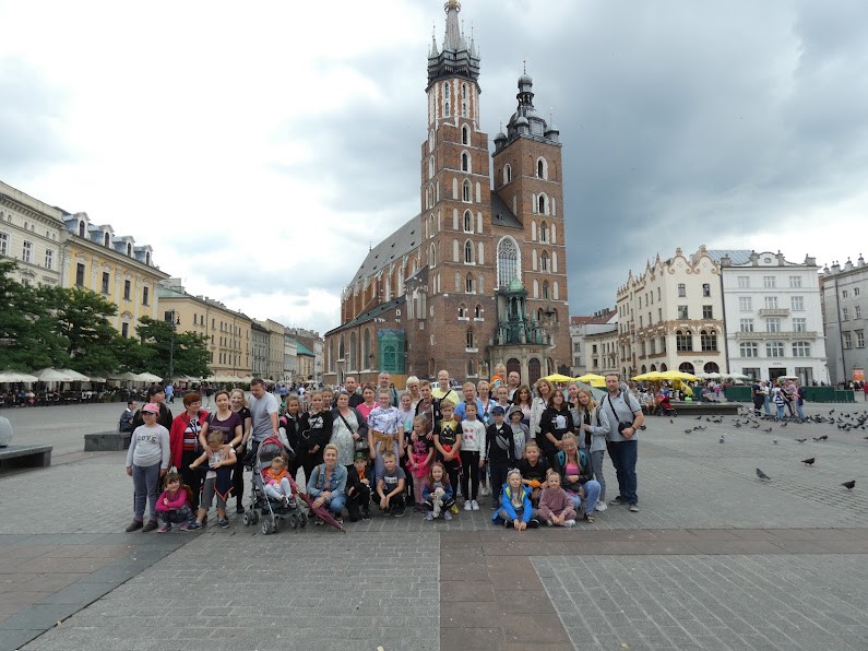 Spod tronu Królowej Polski udaliśmy się do Krakowa Łagiewnik, by pomodlić się przed Jezusem Miłosiernym za przyczyną św. Faustyny. Która jest patronką naszej świetlicy. Odmówiliśmy koronkę do Bożego Miłosierdzia pełni ufności w Jego zbawczą moc, a także tak po ludzku zwiedziliśmy całe sanktuarium, które zrobiło na nas bardzo duże wrażenie. W Krakowie dzieci zobaczyły też smoka, Wawel, Rynek , kościół Mariacki i inne zabytki. Z Krakowa pojechaliśmy do Wadowic, gdzie mogliśmy odwiedzić dom rodzinny św. Jana Pawła II i poznać miejsce gdzie kształtowała się jego dziecięca i młodzieńcza wiara. Pielgrzymka stanowiła zakończenie półkolonii natomiast na pierwszy tydzień składały się zorganizowane zajęcia w świetlicy i na terenie naszej gminy i parafii. Harcerze poprowadzili zabawy w poszukiwanie skarbów. Starsze dzieci miały ciekawe warsztaty z panią psycholog na temat „Aby telefon nie wygrał”, a także poznały dobre i złe strony korzystania z telefonu , internetu ,czy brania udziału w grach komputerowych. Dzieci młodsze odwiedziły gminną bibliotekę, w której zajęcia prowadziła pani Anna Sobczak. Były też zabawy integracyjne w grupach, śpiewanie piosenek a także ćwiczenie scenariusza przedstawienia teatralnego pt. ”Życie św. Faustyny”. Ks. Prałat Stanisław Płaszczyk spotkał się z dziećmi w drewnianym kościele, zaznajomił ich z historią tej świątyni, w której dawniej tętniło całe życie parafialne. Dzieci Pożegnały też ks. Marcina Zaworskiego, który przez 7 lat był Prefektem naszej parafii i brał udział w różnych inicjatywach świetlicy parafialnej.