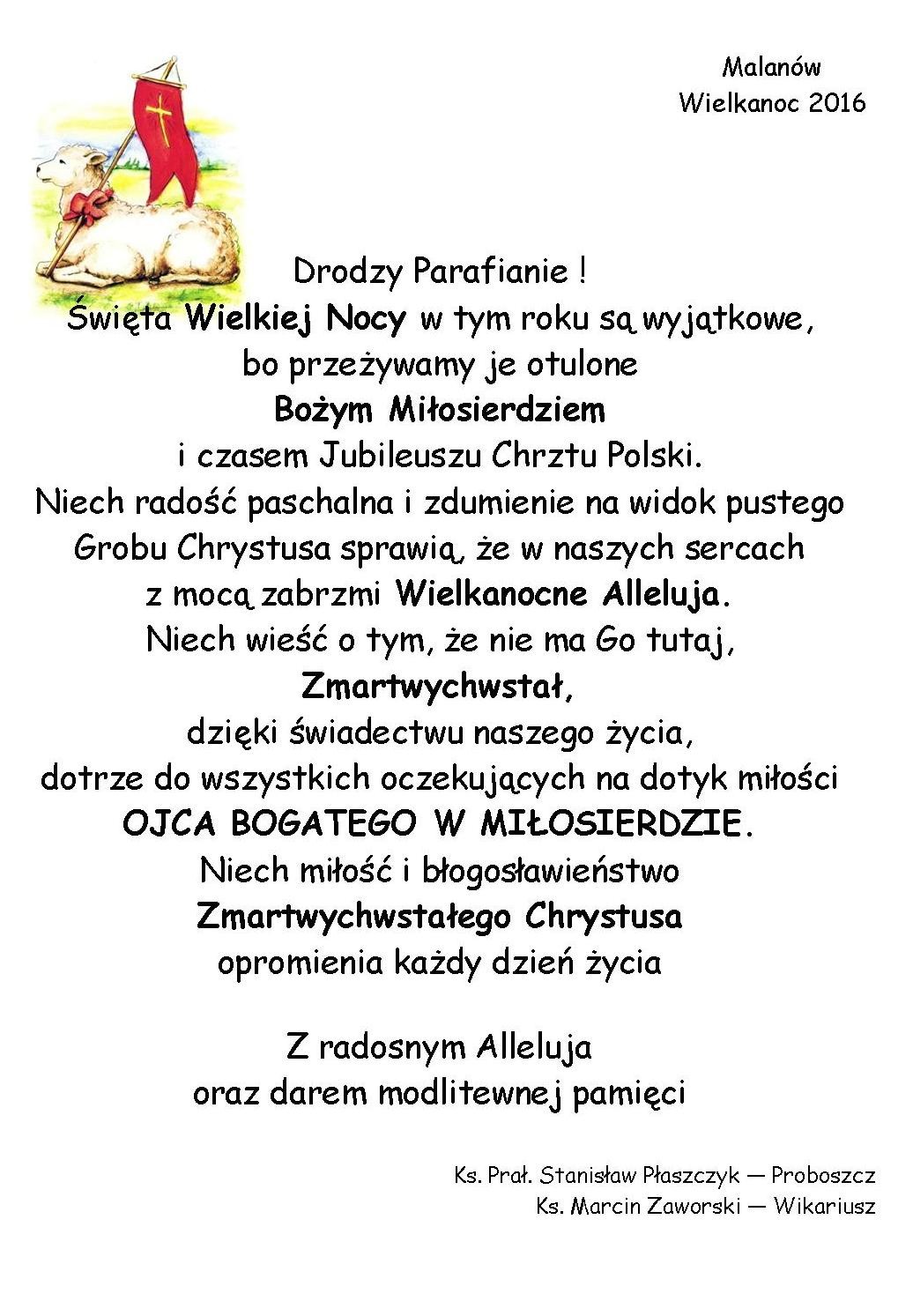 Jesteś tutaj: Strona główna » Parafia Malanów » Aktualności » Życzenia Wielkanocne