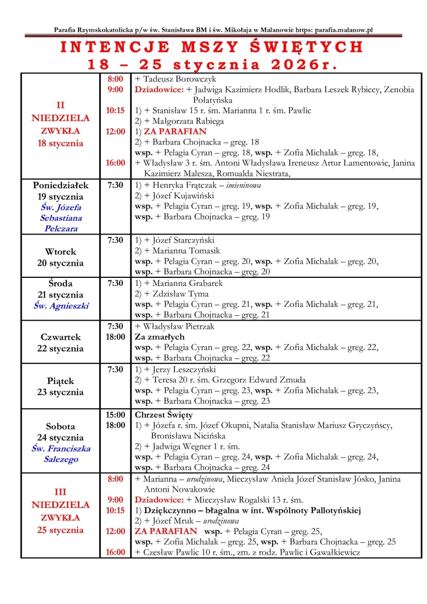 Dziś jest wtorek, 20.01.2026, imieniny Fabiana, Sebastiana