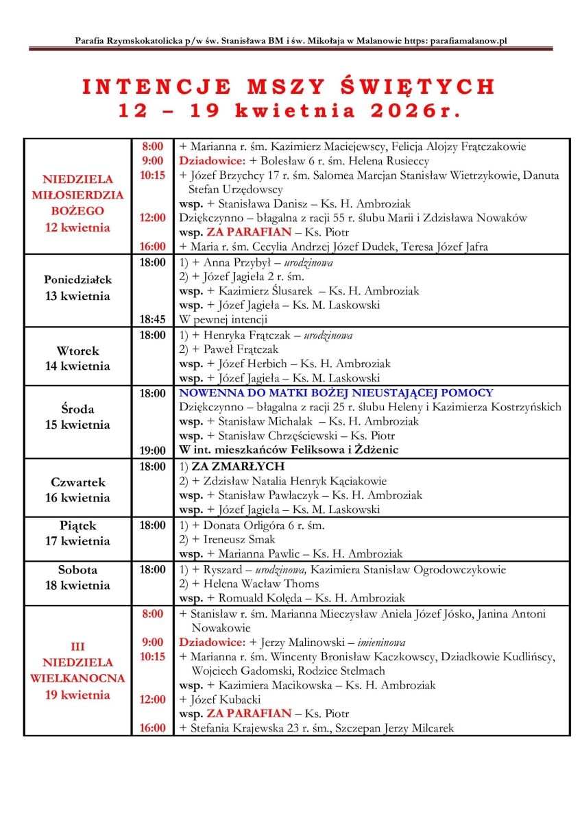 Intencje mszalne